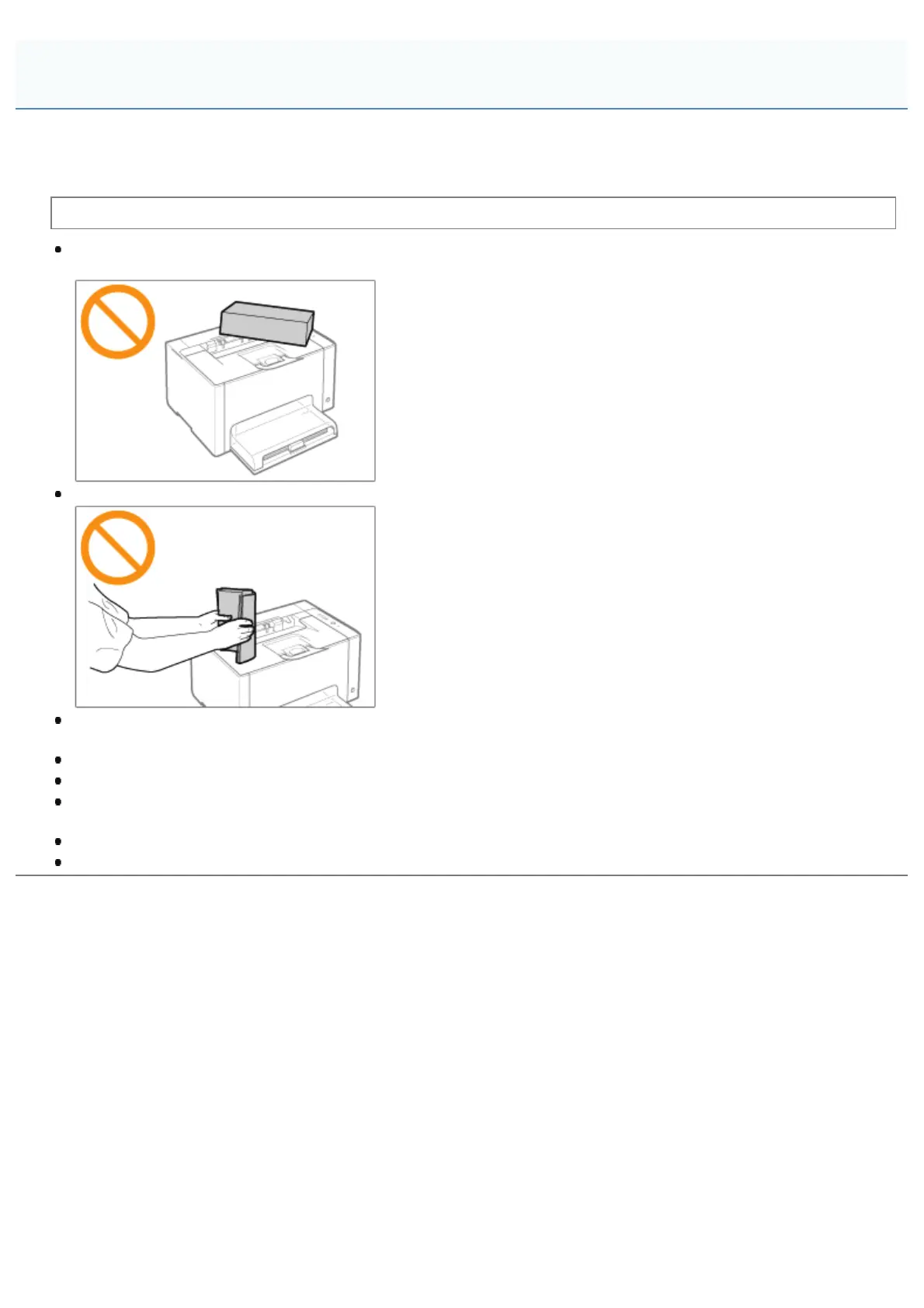 Do not place any objects other than printing paper on the printer, trays, or covers. This may result in damage to the