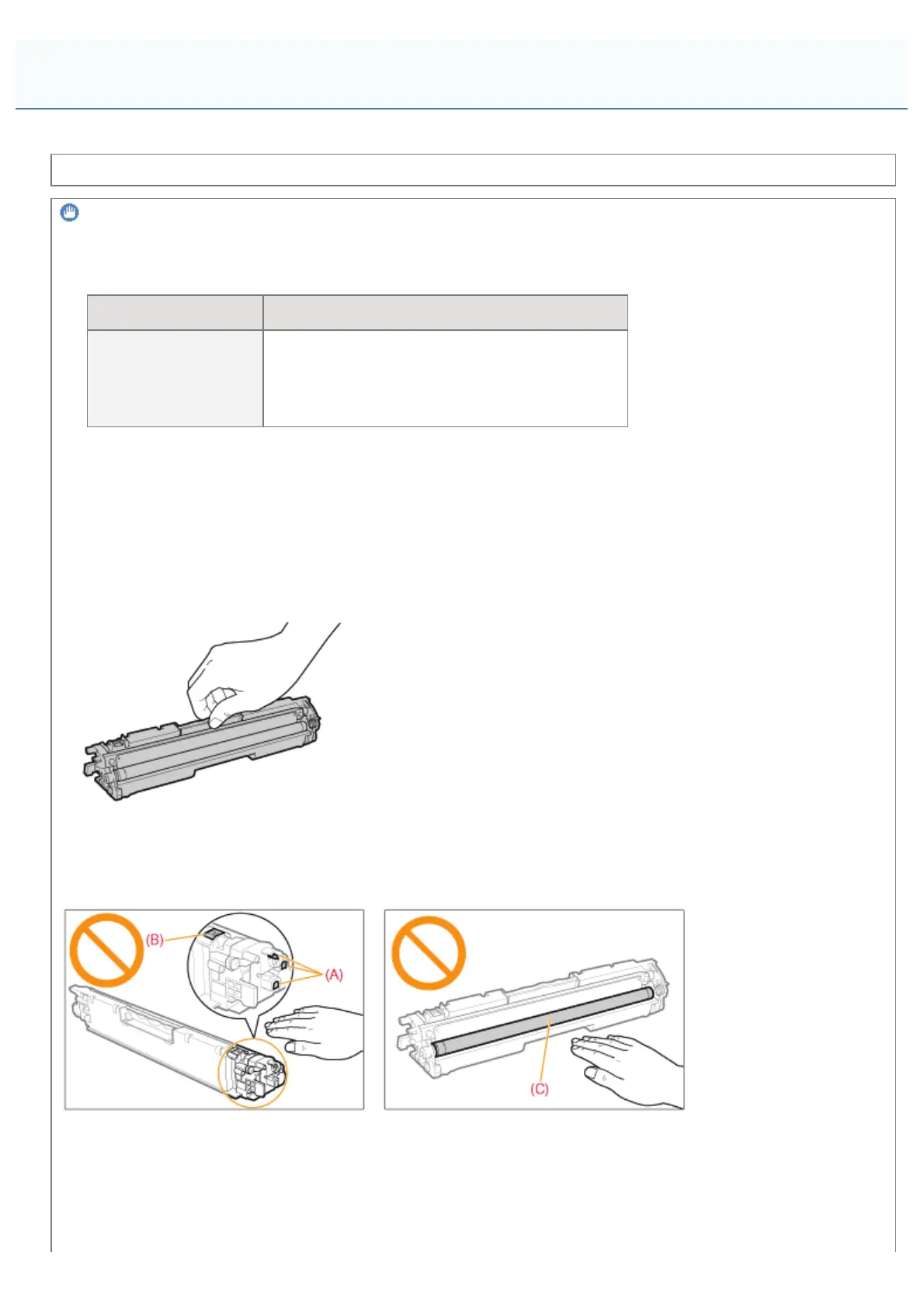 Also, print quality may deteriorate if you touch the development roller (C).