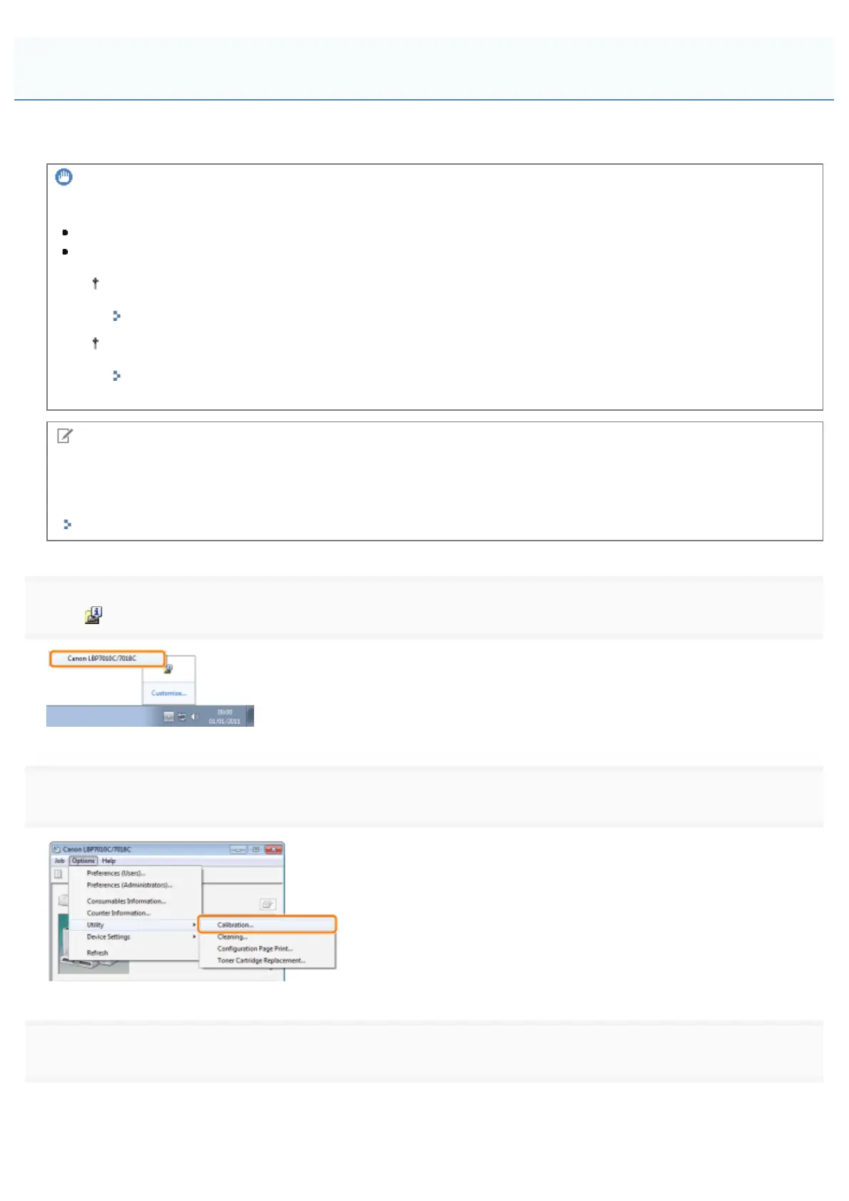 If you perform calibration frequently, this may affect the life of the toner cartridges or drum cartridge.