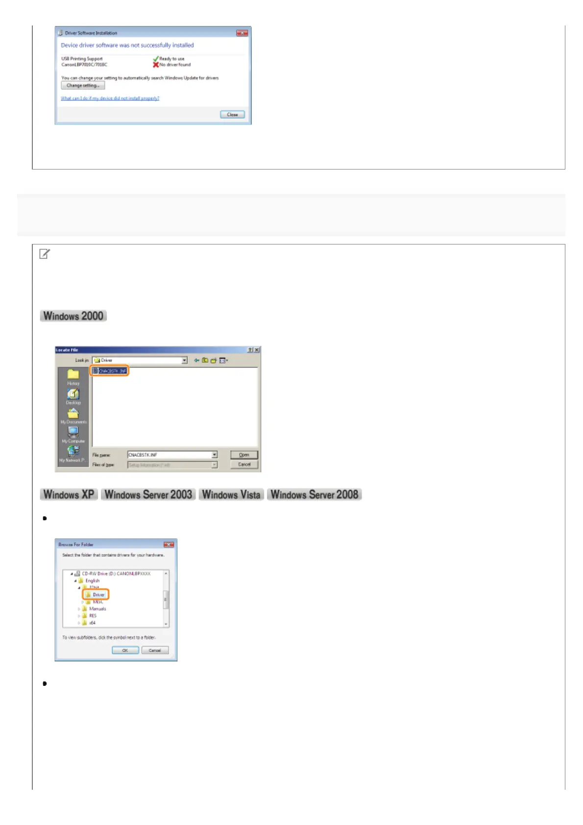 Select [CNACBSTK.INF] in the [English] - [32bit] - [Driver] folders in the supplied CD-ROM.
