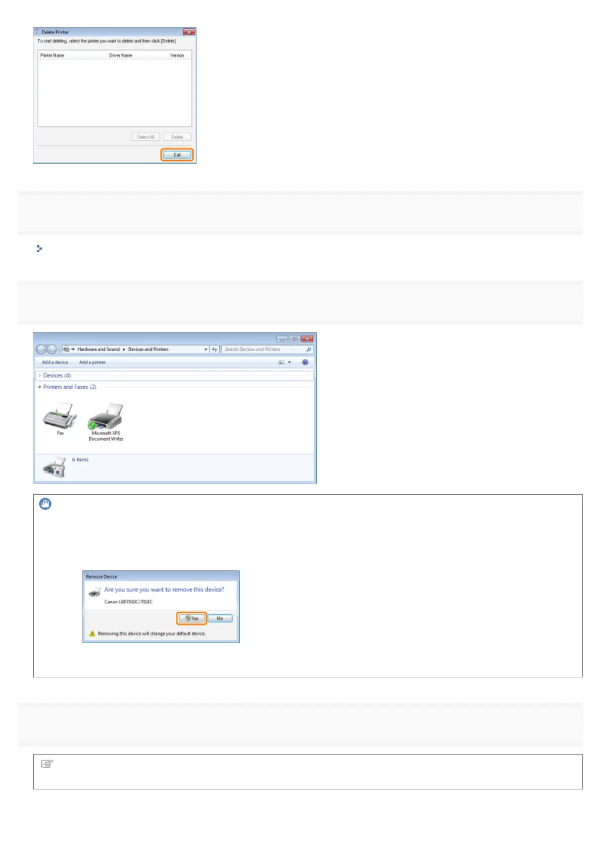 1. Right-click the icon, and then select [Remove device] or [Delete] from the pop-up menu.
