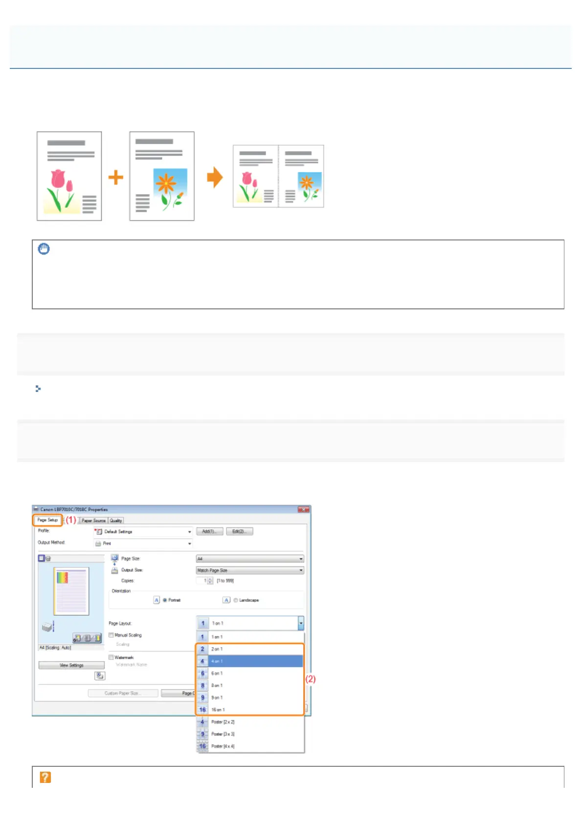 (2) Select the number of pages to be printed on one sheet.