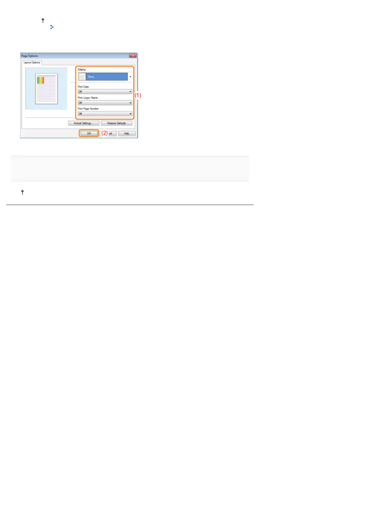 (2) Click [OK]. Then, the [Page Setup] sheet reappears.