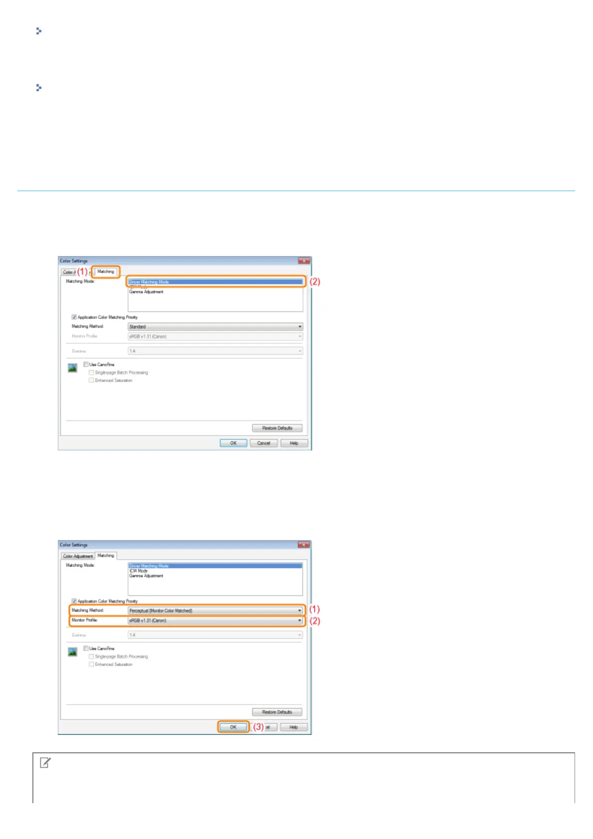(1) Set [Matching Method] to [Perceptual [Monitor Color Matched]].