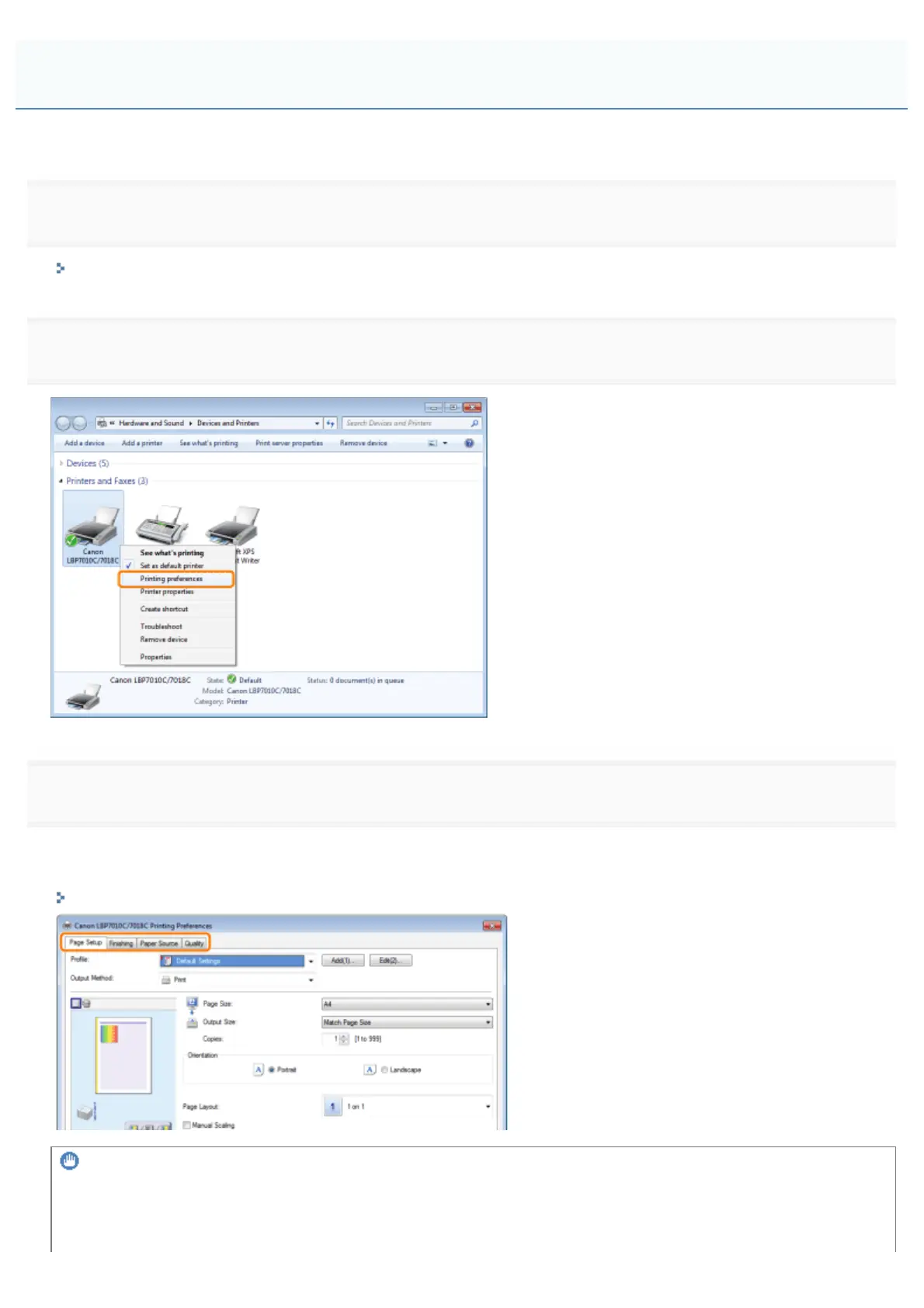 Right-click the icon for this printer, then select [Printing Preferences] from the pop-up menu.