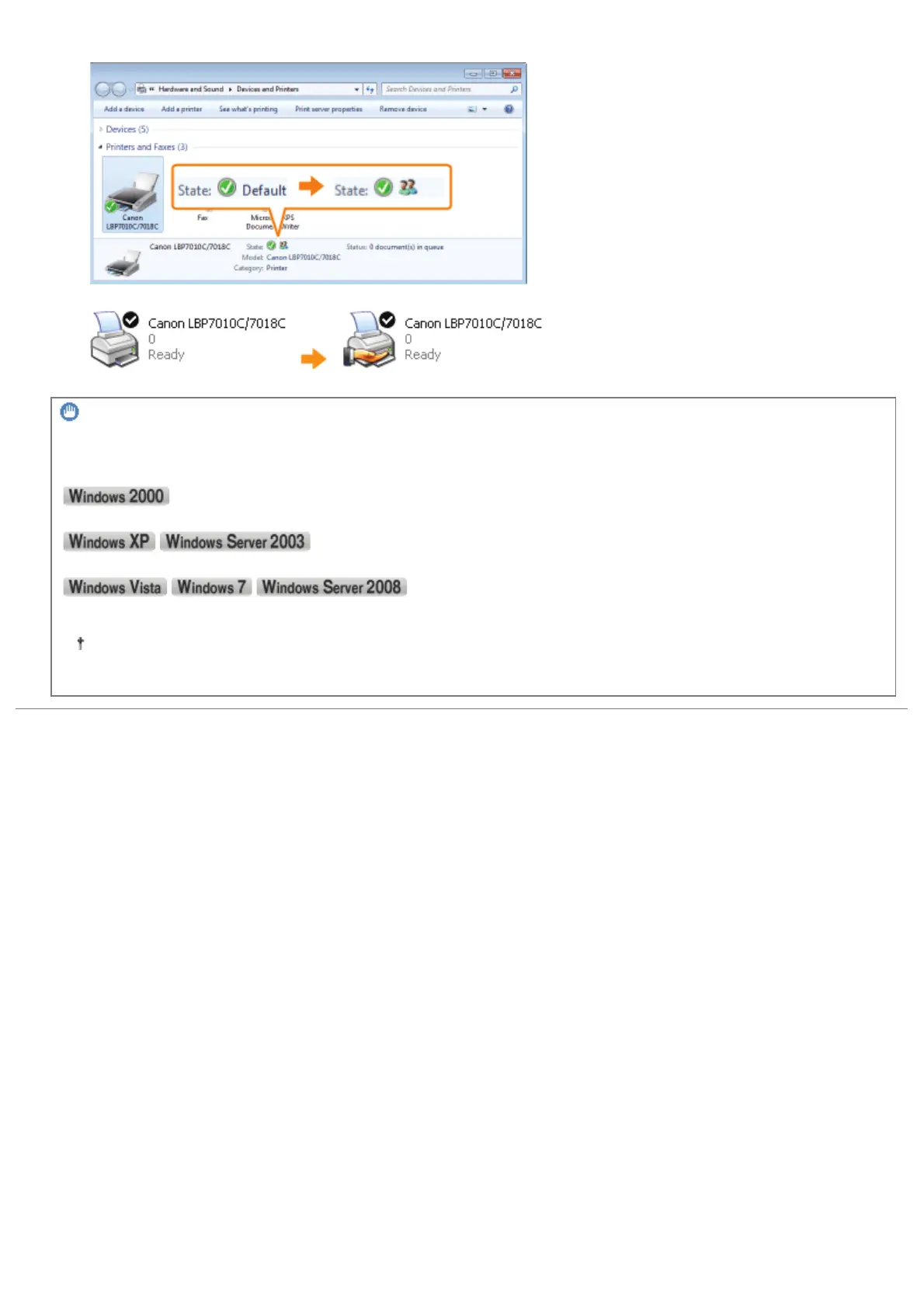 ĺ [State] or the printer icon change to those for the sharing settings.