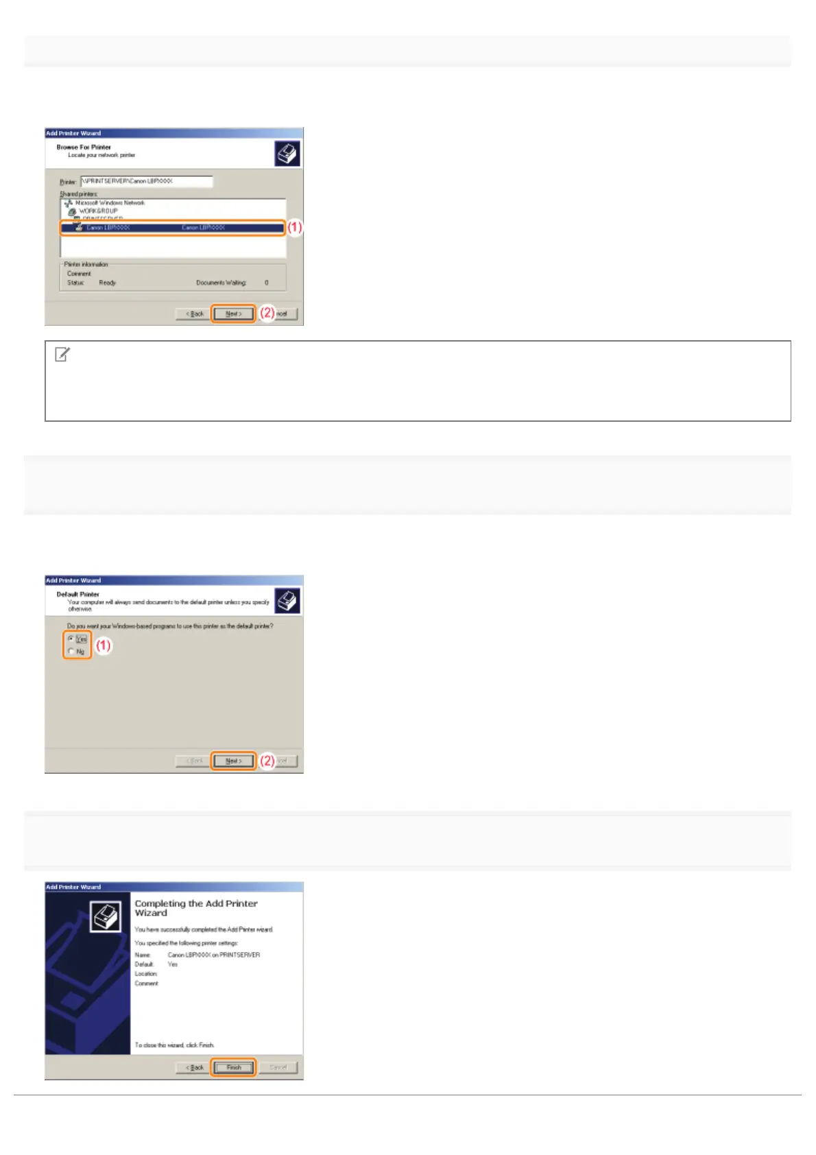(1) Select a shared printer on the print server.