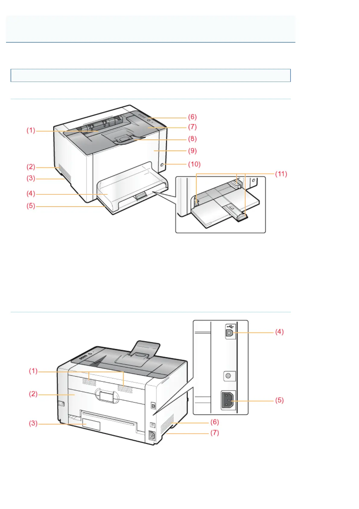 (1) Output Tray (5) Multi-purpose Tray (9) Front Cover