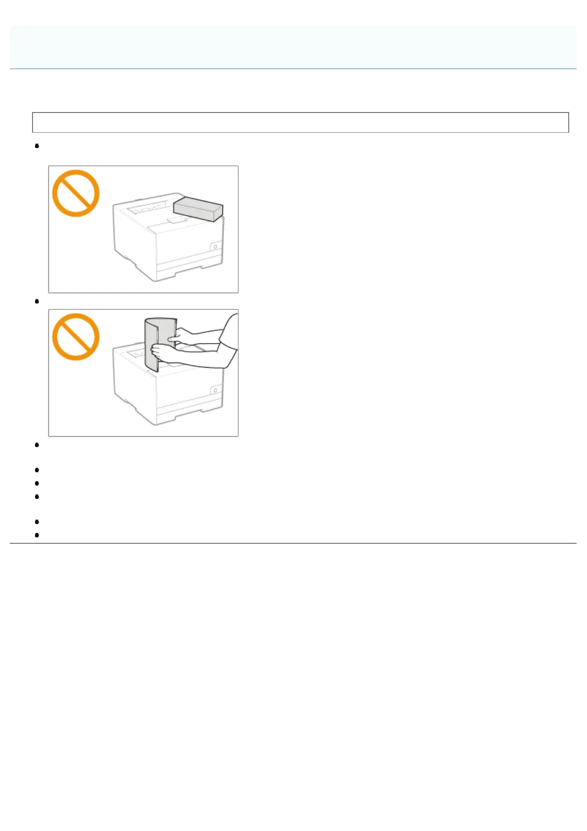 Do not place any objects other than printing paper on the printer, trays, or covers. This may result in damage to the