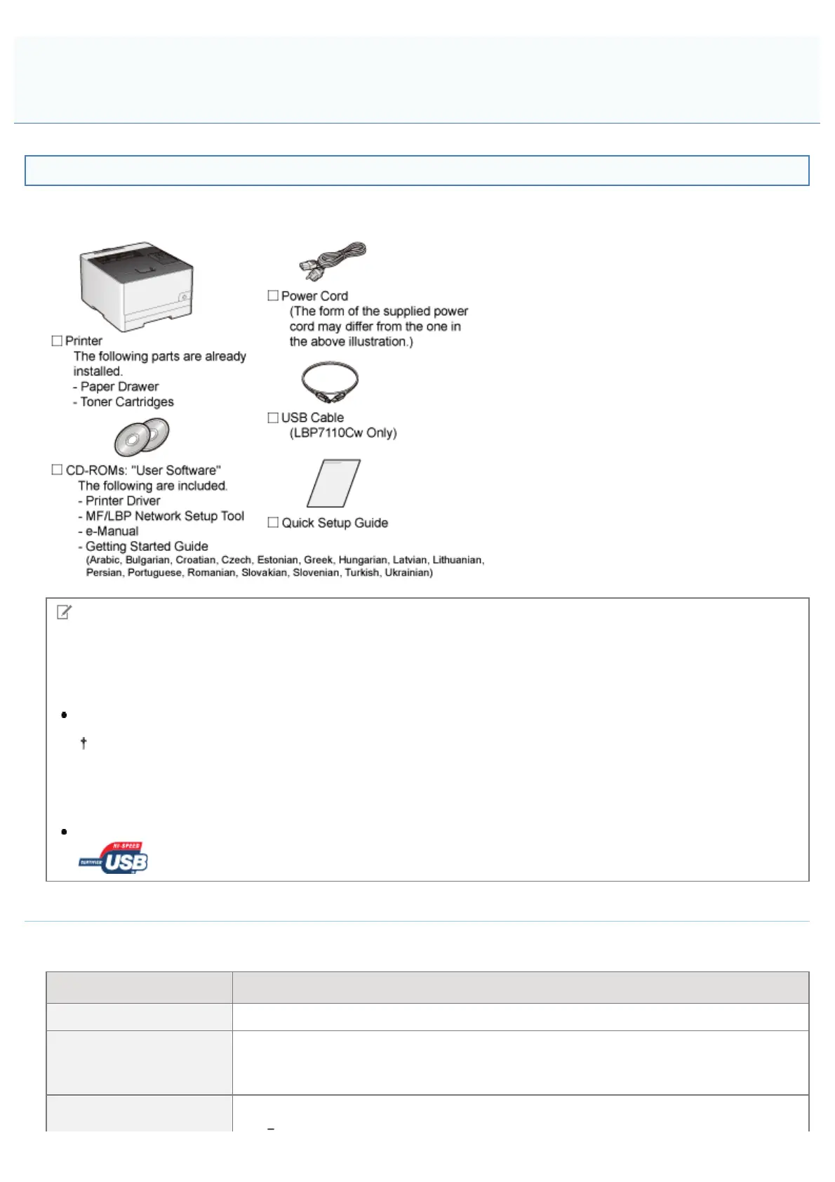 LBP7110Cw comes with a USB cable.