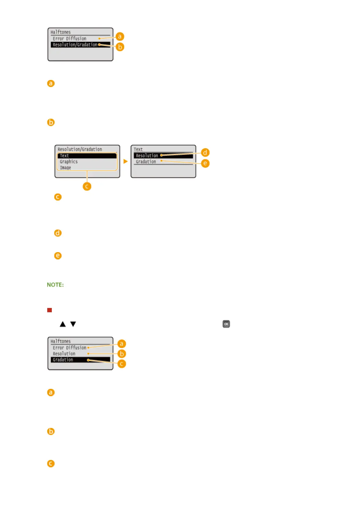 ● When <Error Diffusion> is set to <On>, <Resolution/Gradation> is not displayed.