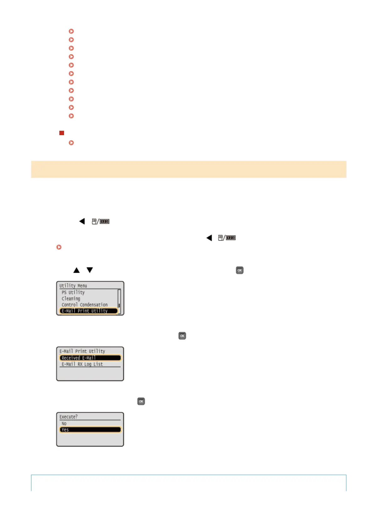 Use / to select <E-Mail Print Utility>, and press .