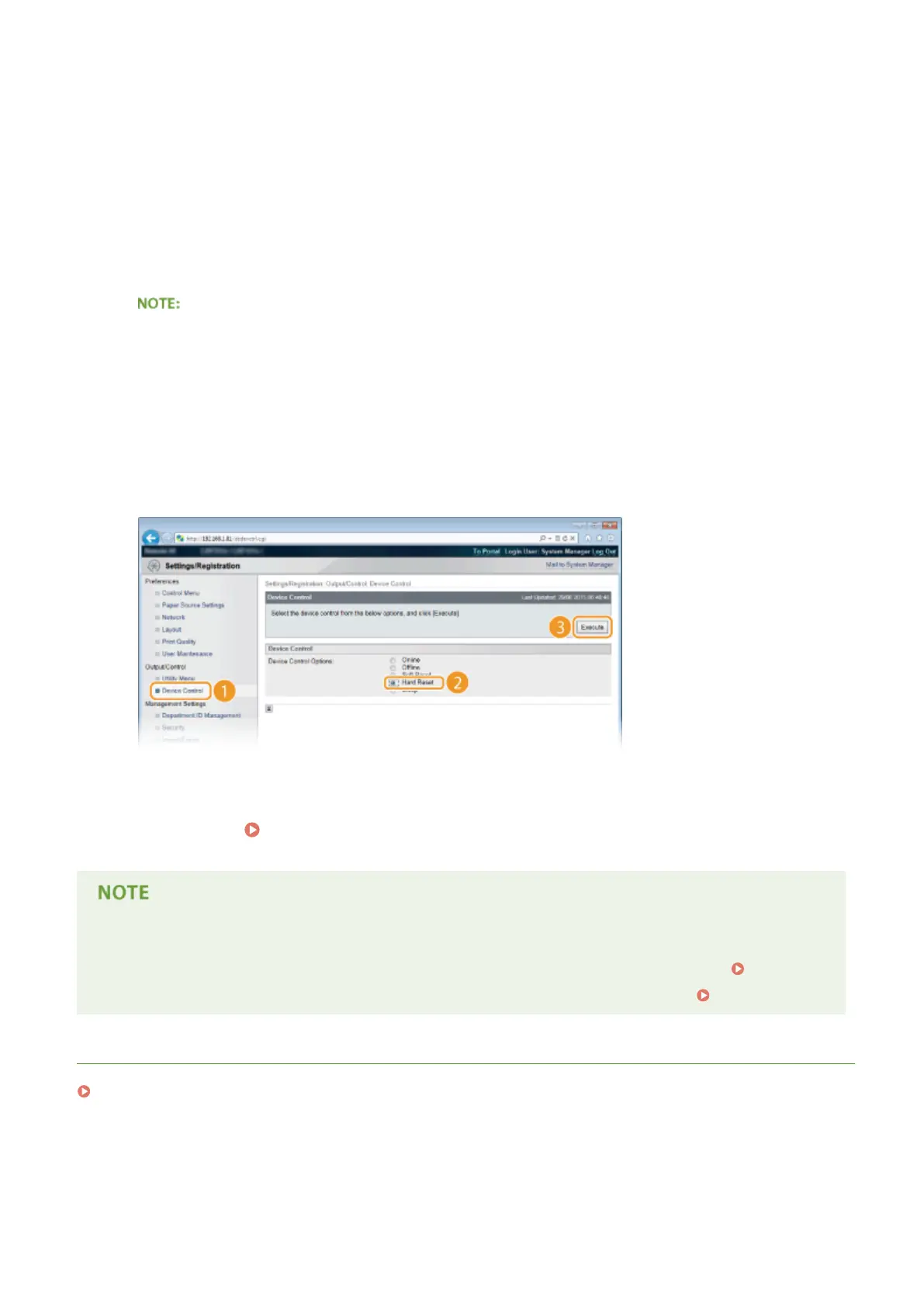 ● Click [Device Control], select [Hard Reset], and then click [Execute].