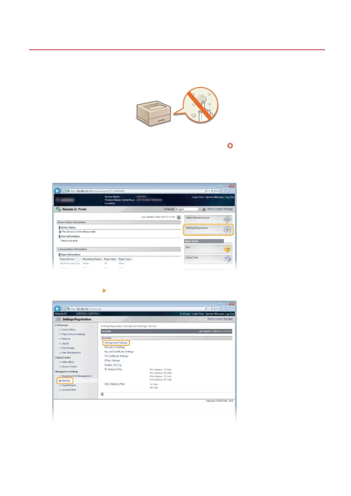 Start the Remote UI and log on in Management Mode. Starting Remote UI(P. 336)