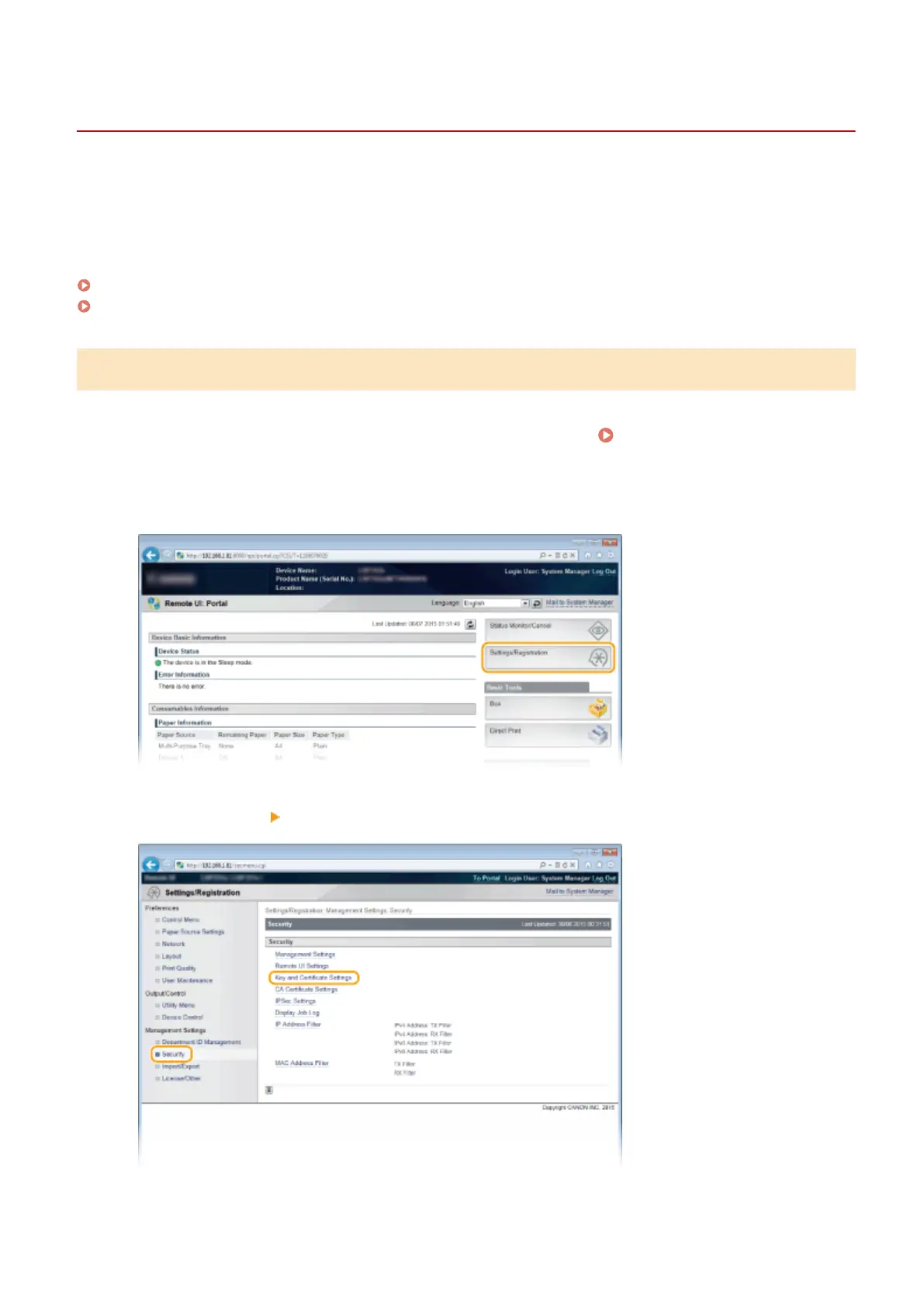 Click [Security] [Key and Certicate Settings].