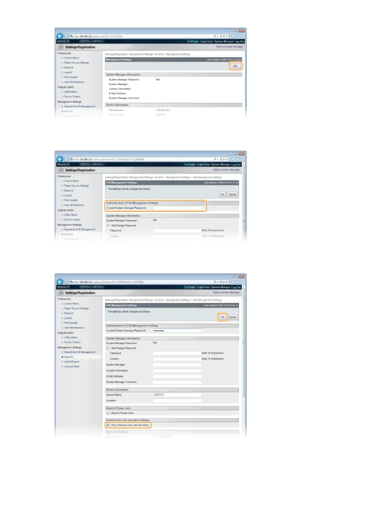 Select the [Allow General User Job Operation] check box and click [OK].