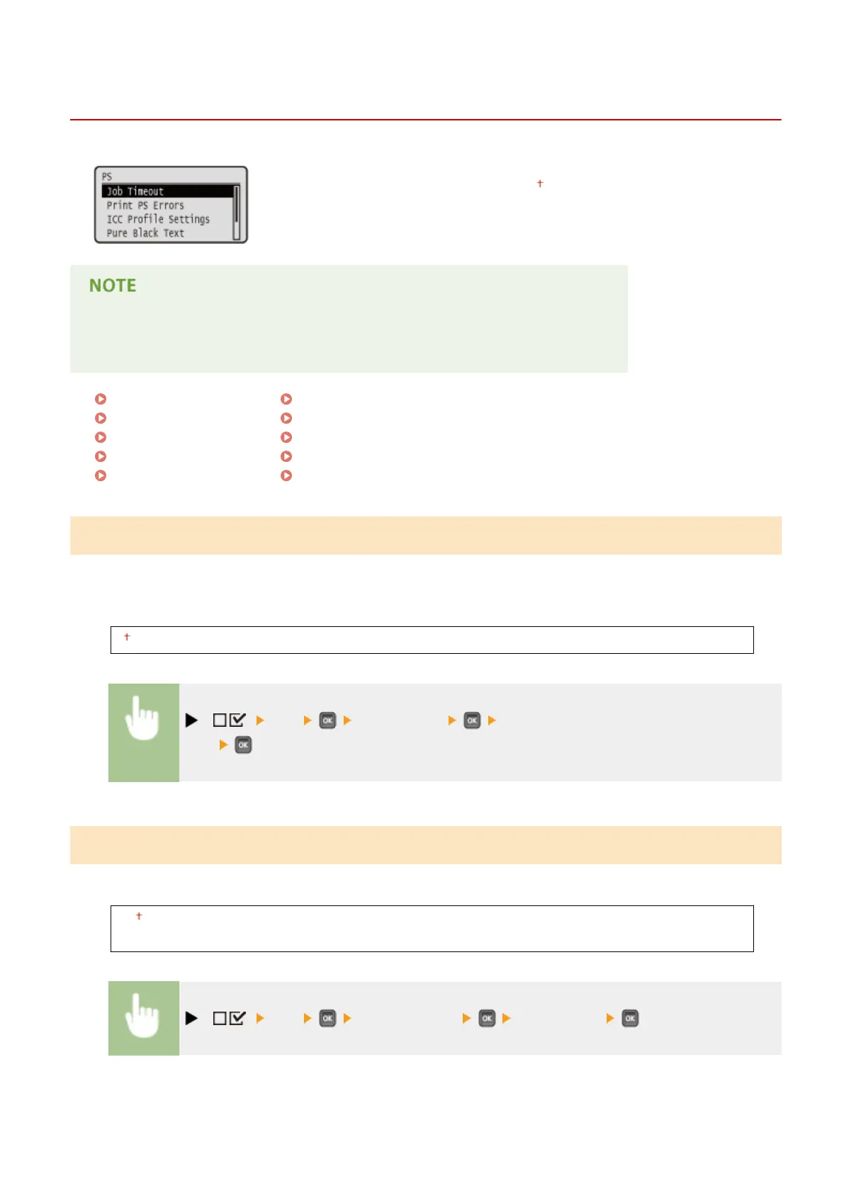 ( ) <PS> <Job Timeout> Use the numeric keys to enter the setting