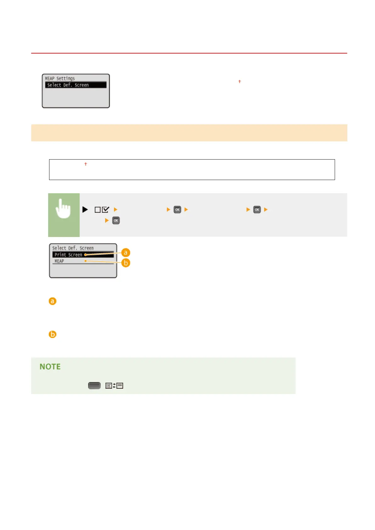 ( ) <MEAP Settings> <Select Def. Screen> <Print Screen> or
