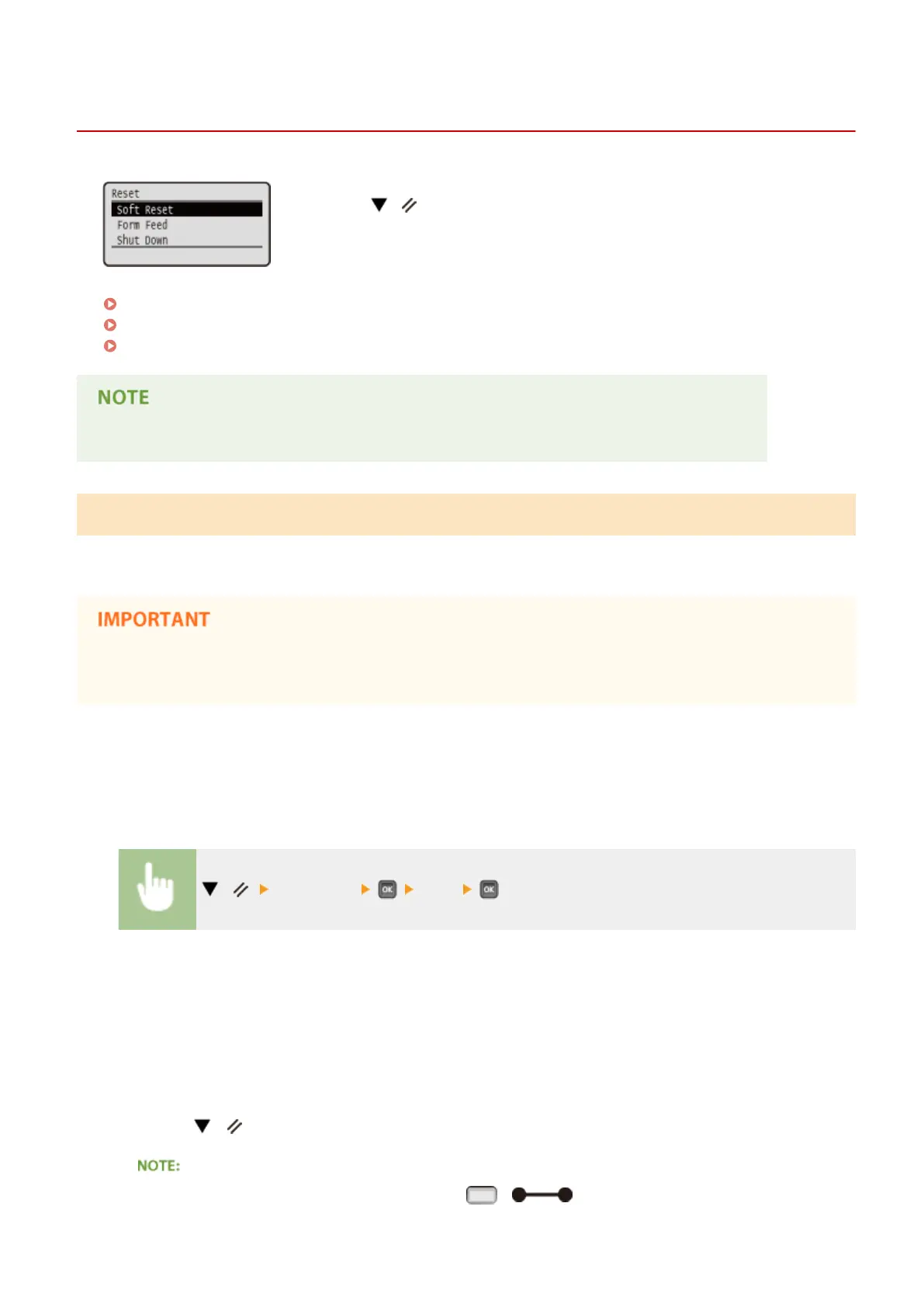 ● Make sure to check that other users are not using the machine before performing a soft reset or hard reset,