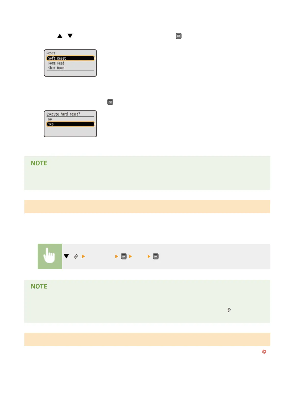 Use / to select <Soft Reset>, press and hold for 5 seconds or more, and