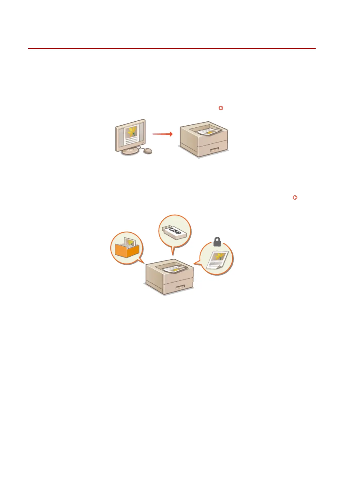 This section describes how to print documents made on your computer, print les saved in a USB memory device, and