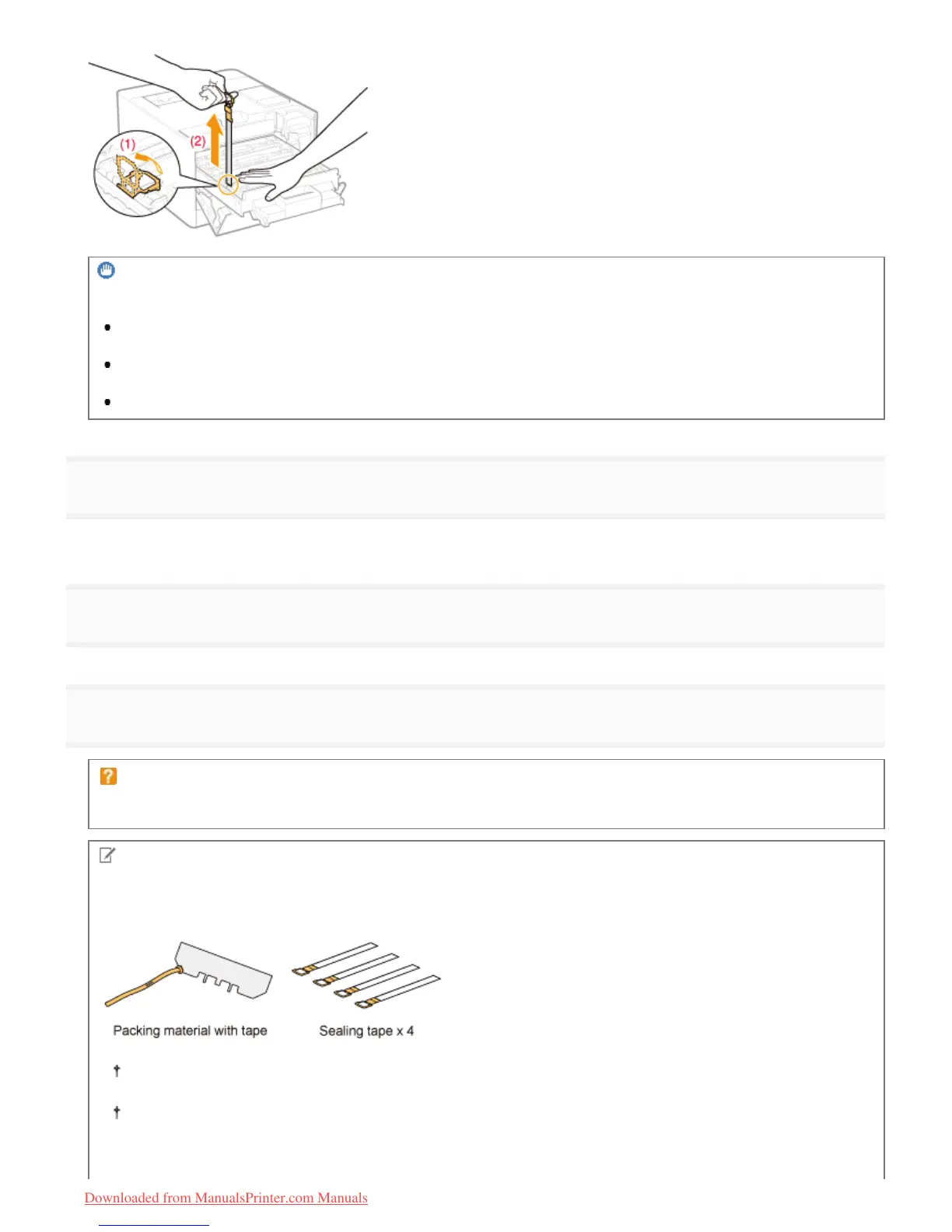 Precautions when pulling out the sealing tape