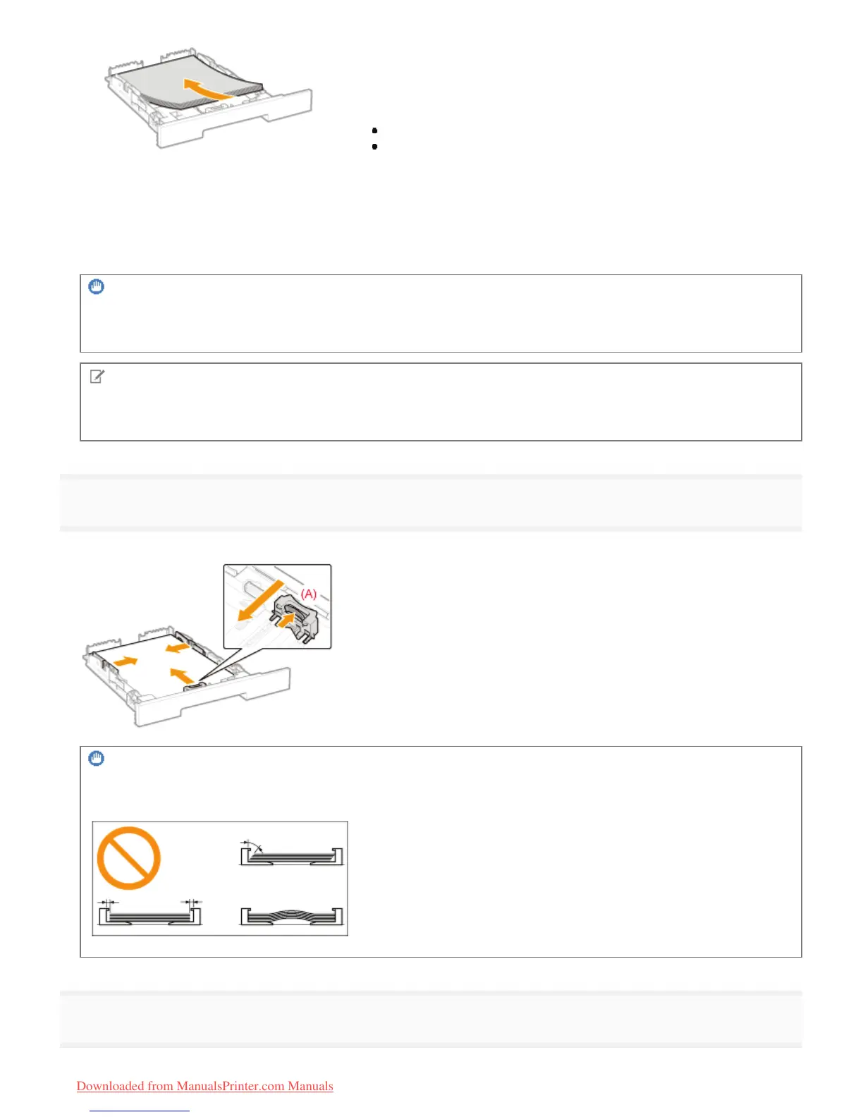 Make sure that the paper stack does not exceed the load limit mark lines (A).