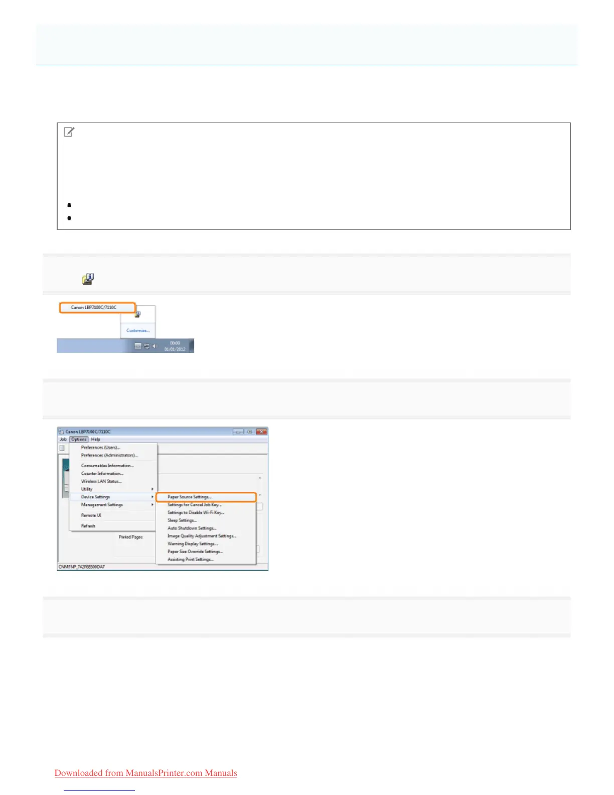 As you cannot register a paper size and type while printing is in progress, make sure that the printer is idle before