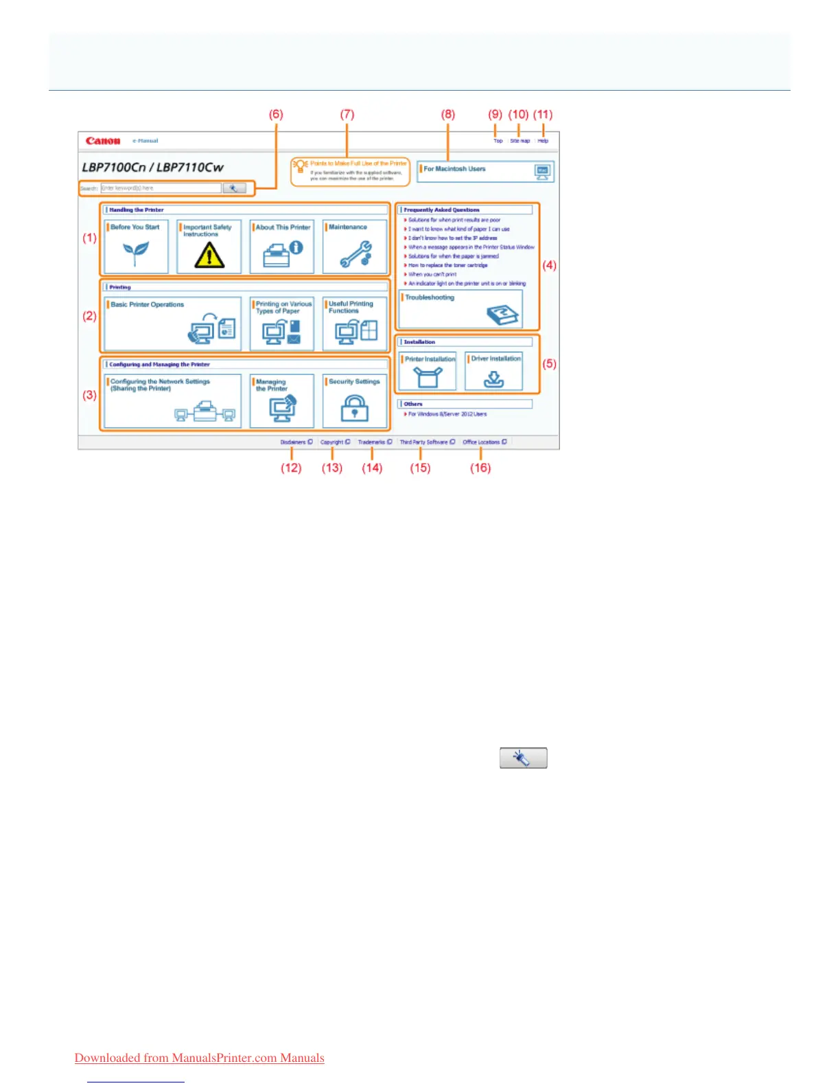 The top page of the e-Manual is displayed.