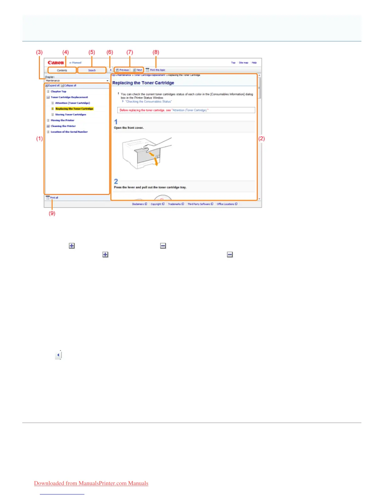 This is the list of the contents in the chapter. Clicking each item displays the description in the topic page.