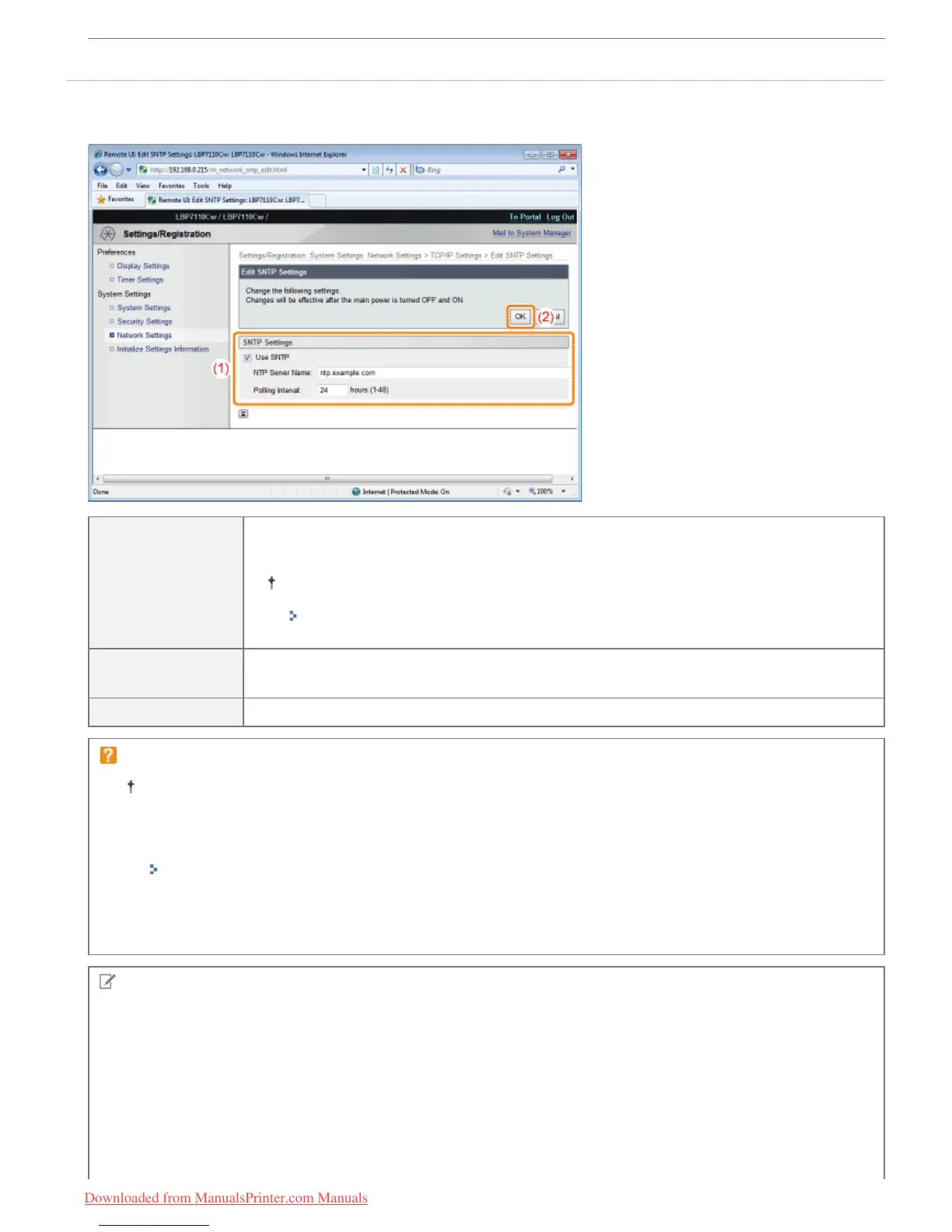 (1) Specify the settings for SNTP.