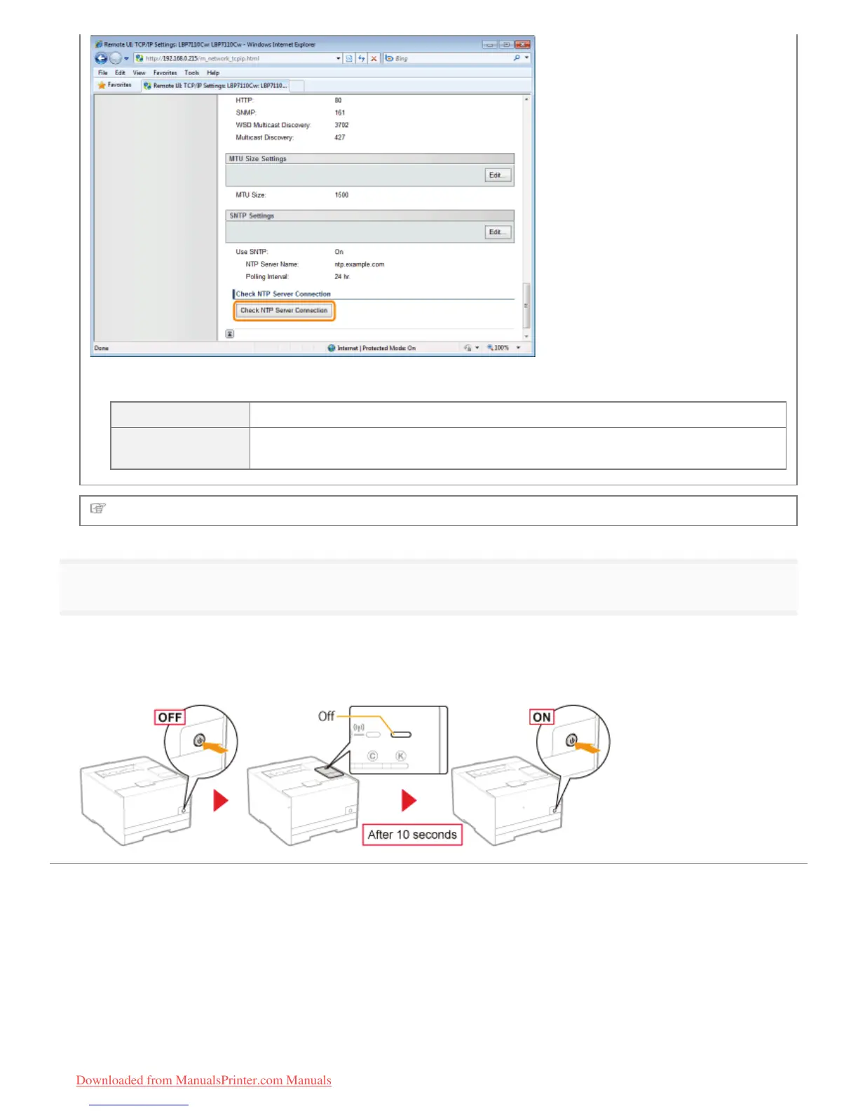Clicking [Check NTP Server Connection] initiates communication with the NTP server specified in [NTP Server Name],