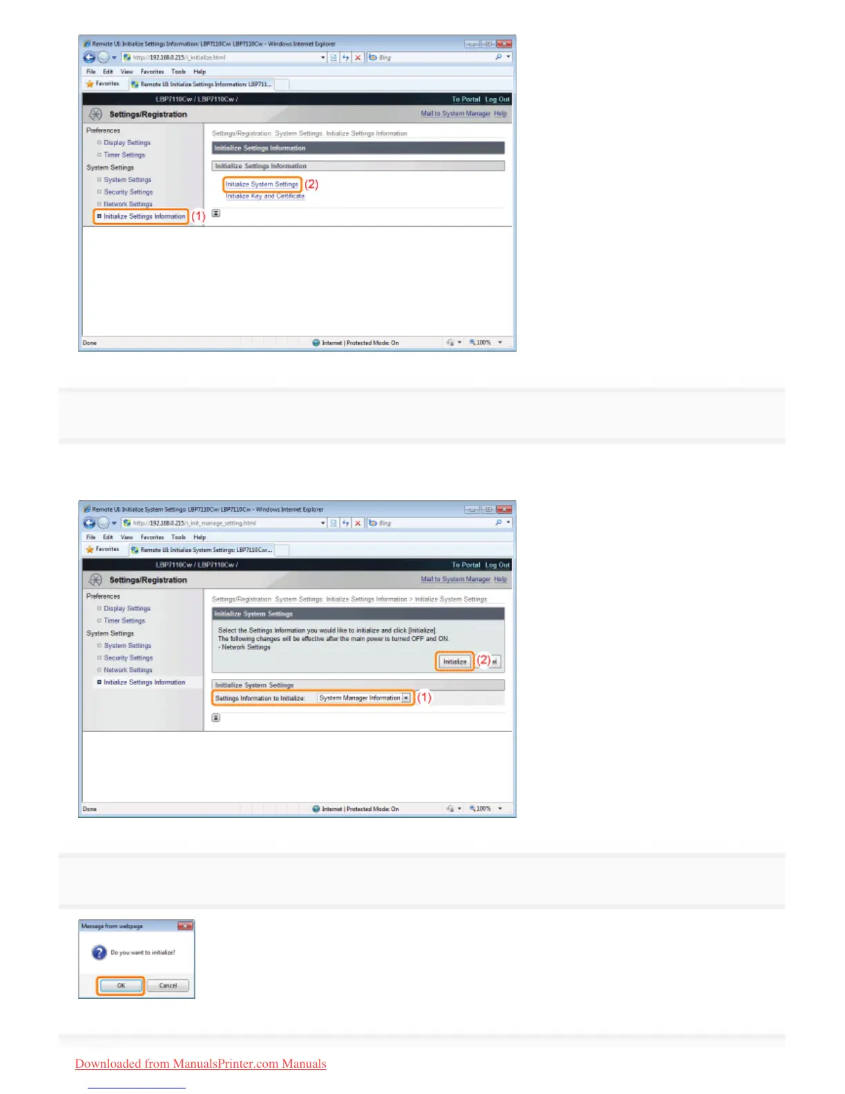 (2) Click [Initialize].