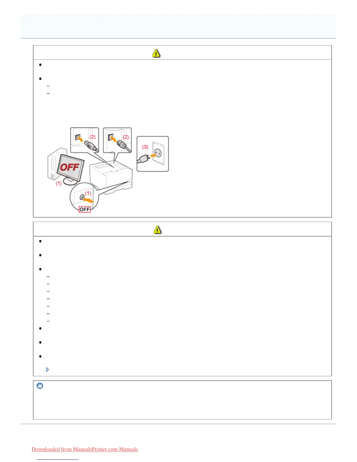 substances come into contact with electrical parts inside the printer, this may result in a fire or electrical shock.