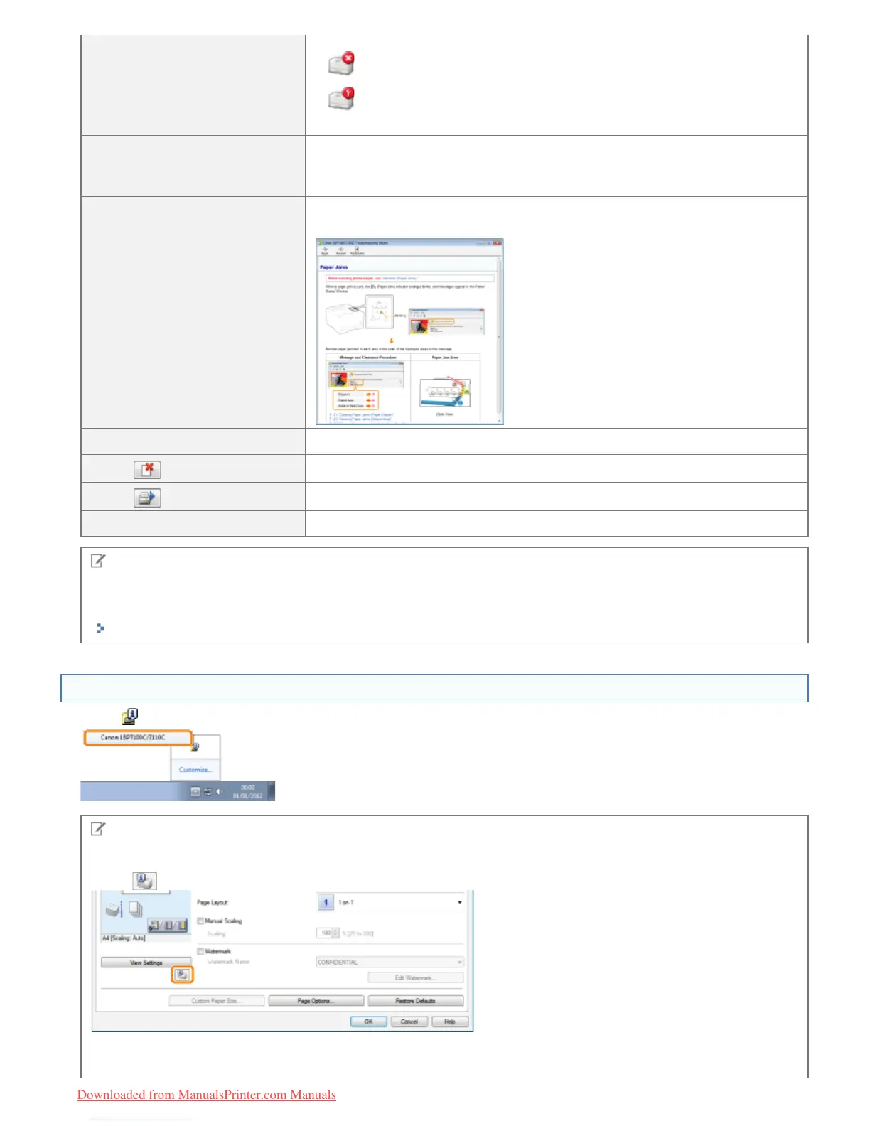 ] (Display Printer Status Window) in locations such as in the [Page Setup] sheet.