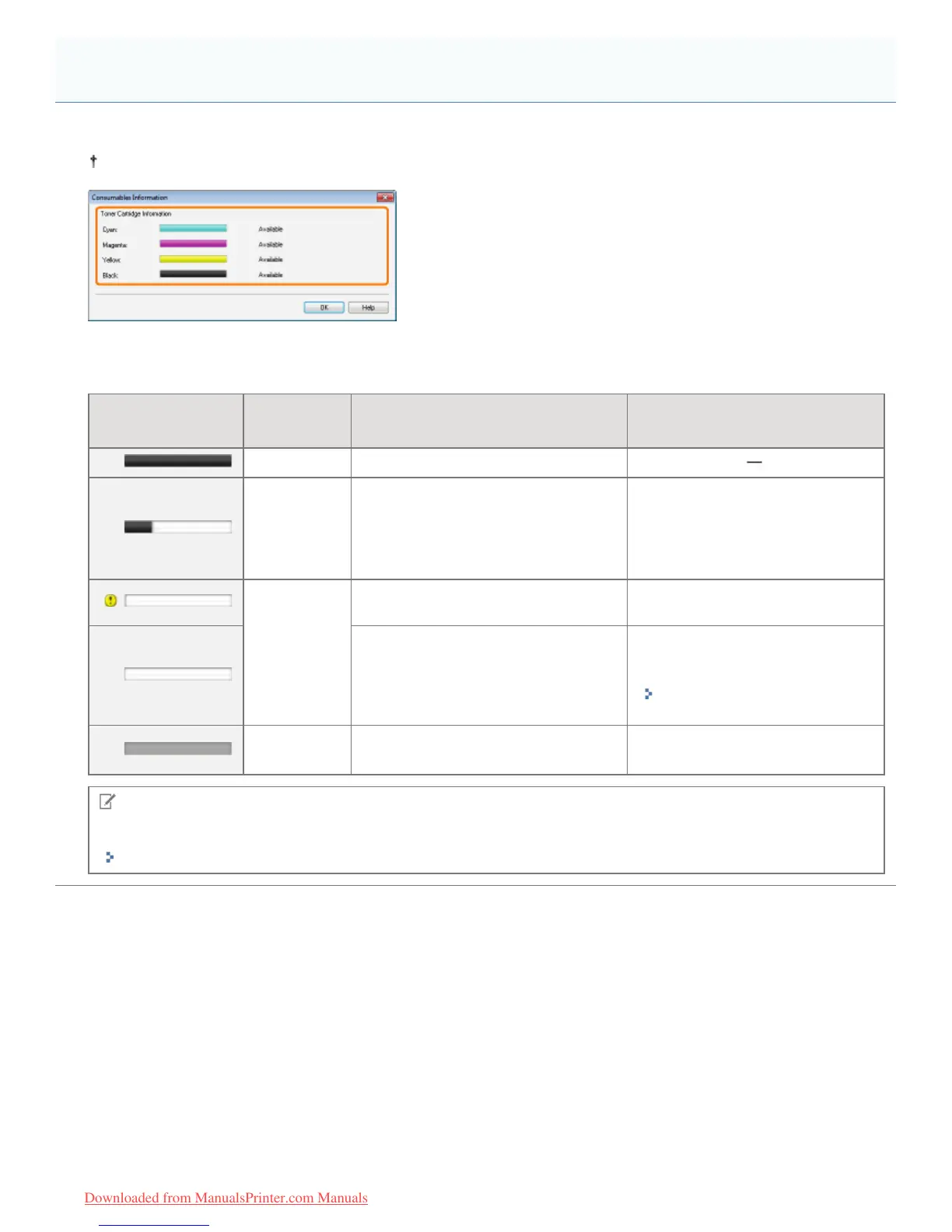 You can check the current consumables status in the [Consumables Information] dialog box in the Printer Status Window.