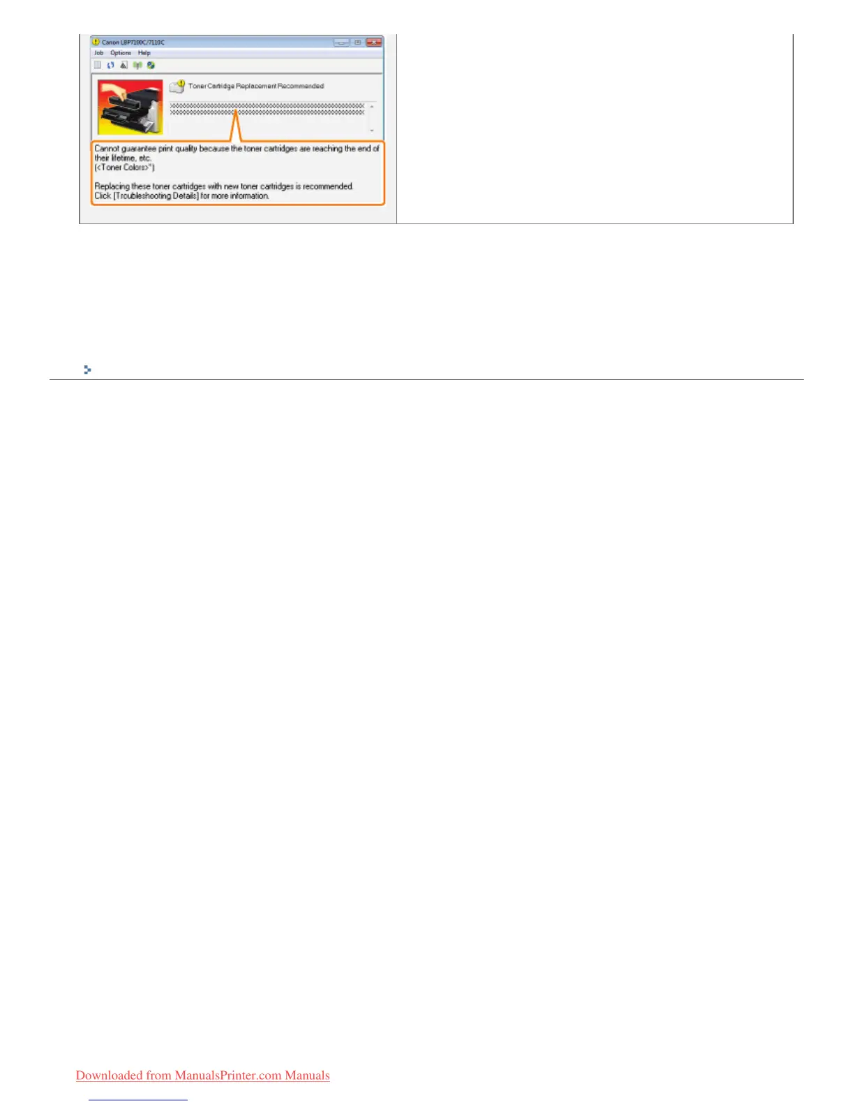 <Toner Colors> displays the colors of the toner cartridges targeted for messages. (Multiple colors of the toner cartridges