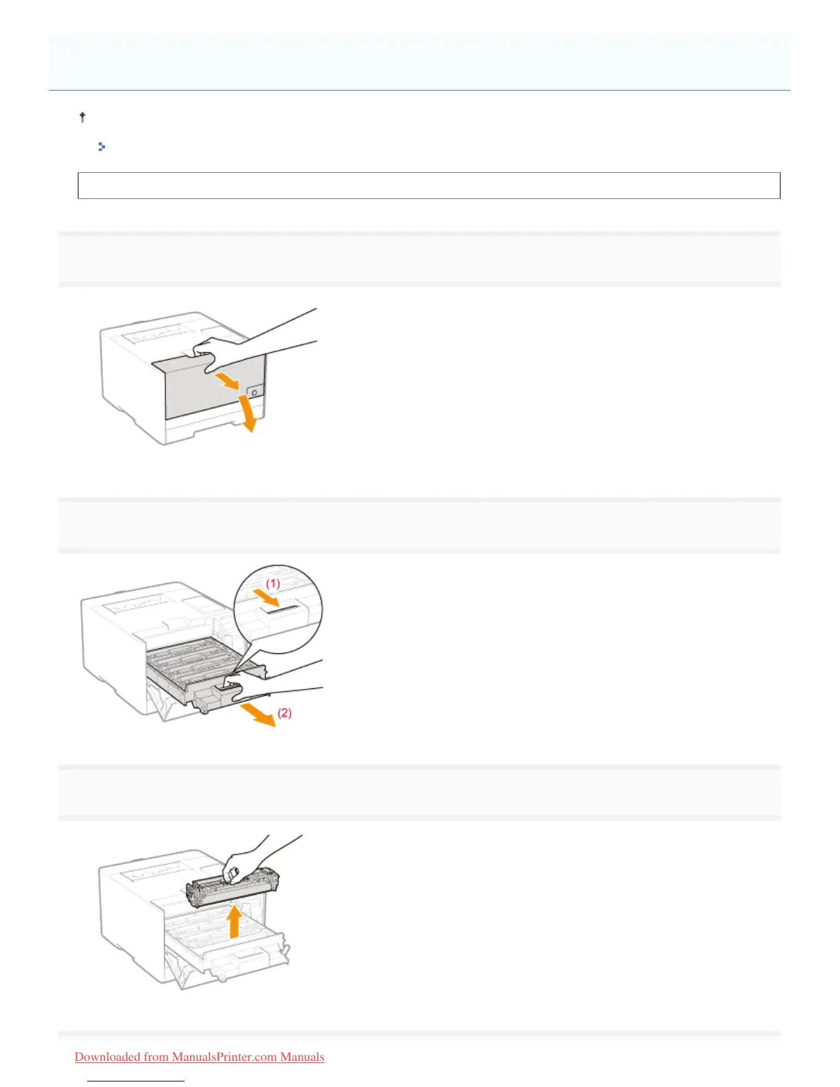 Hold the toner cartridge to be replaced by its handle and pull it straight up and out of the printer.