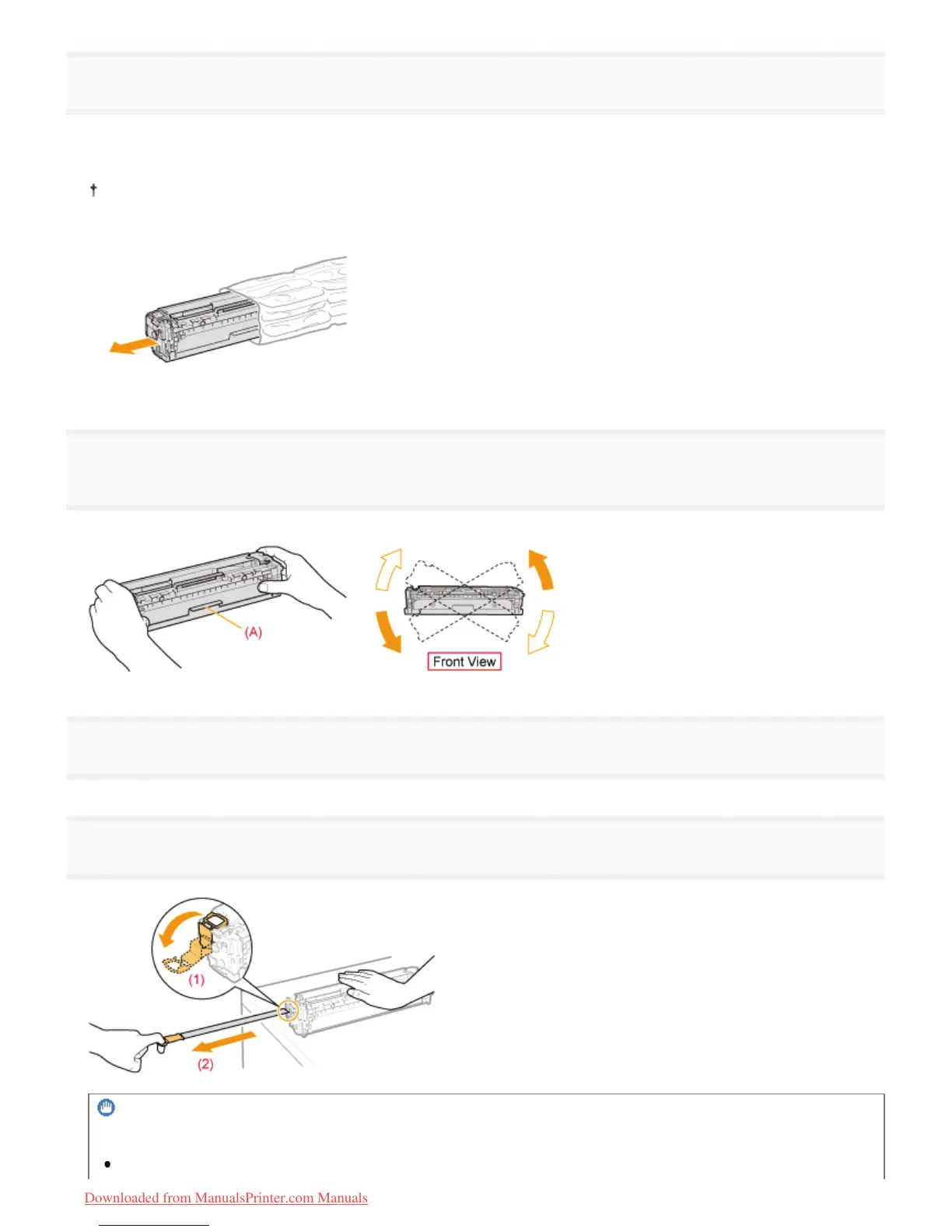 Shake the toner cartridge five or six times as shown in the figure to evenly distribute the toner inside