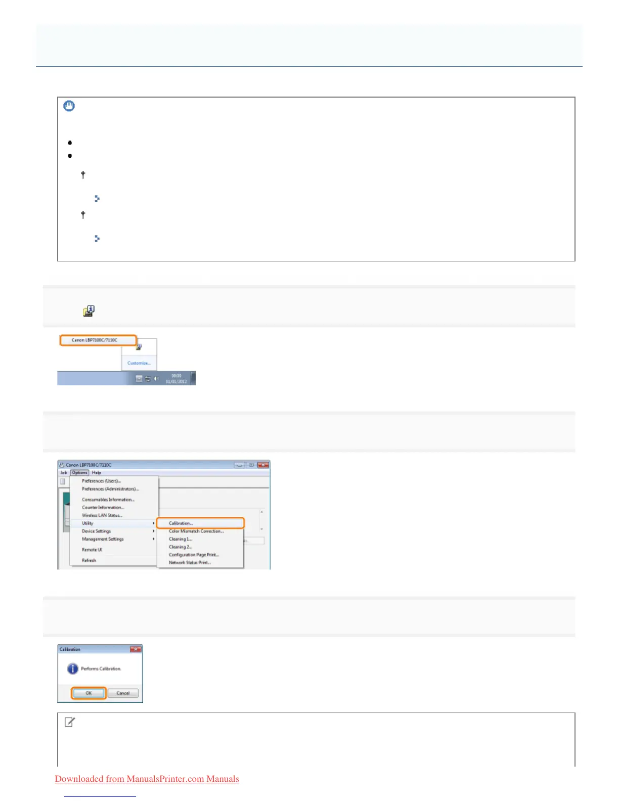 If you perform calibration frequently, this may affect the life of the toner cartridges.