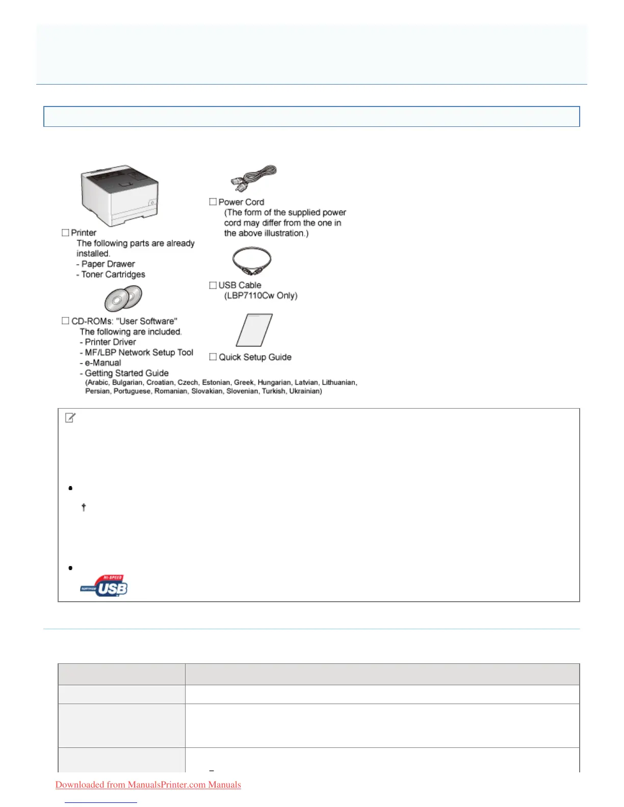 LBP7110Cw comes with a USB cable.