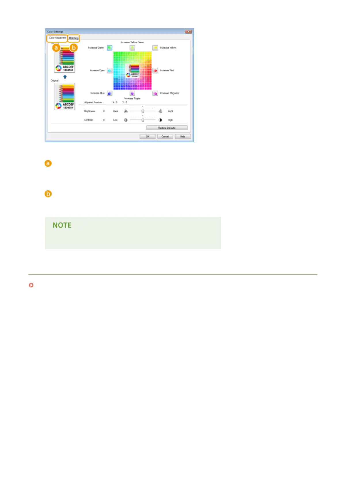 Specify the color matching settings (for example, you can adjust the settings so that the color tones on your