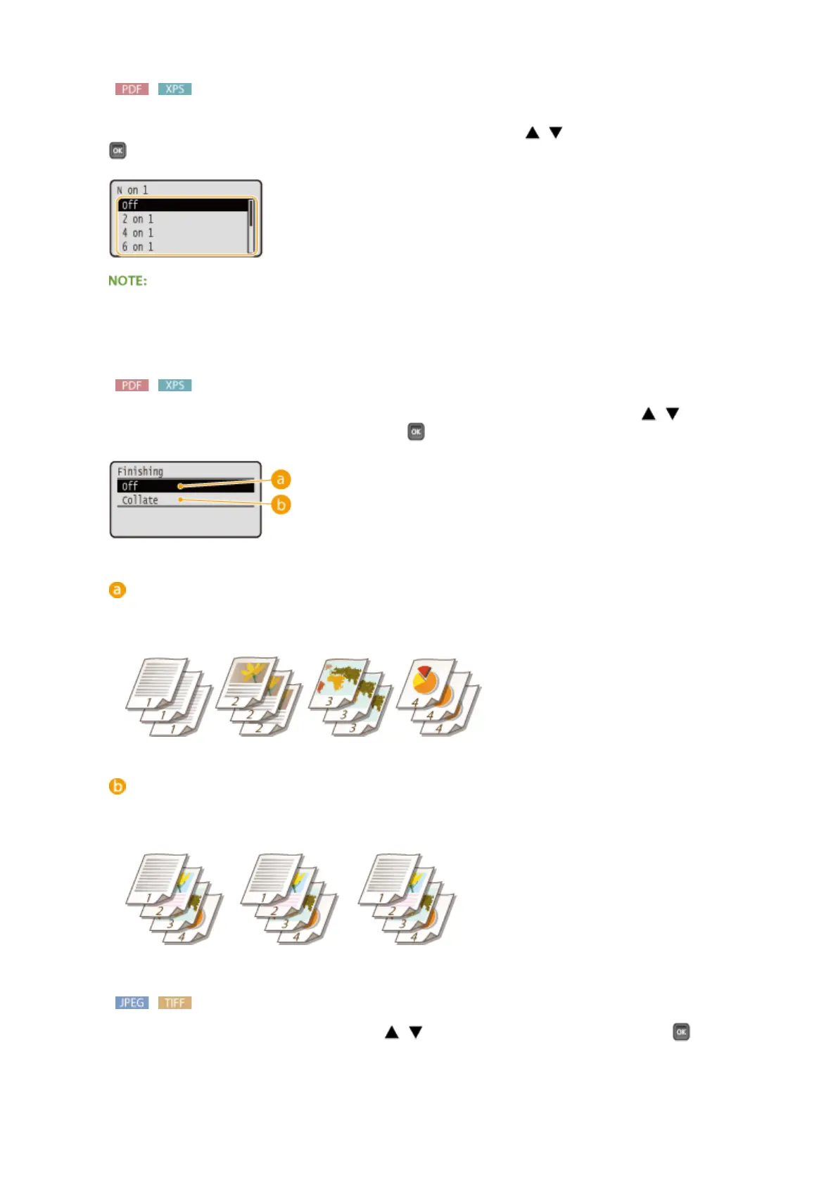 Select whether to print multiple pages onto a single sheet by sequentially allocating them from the top left. For