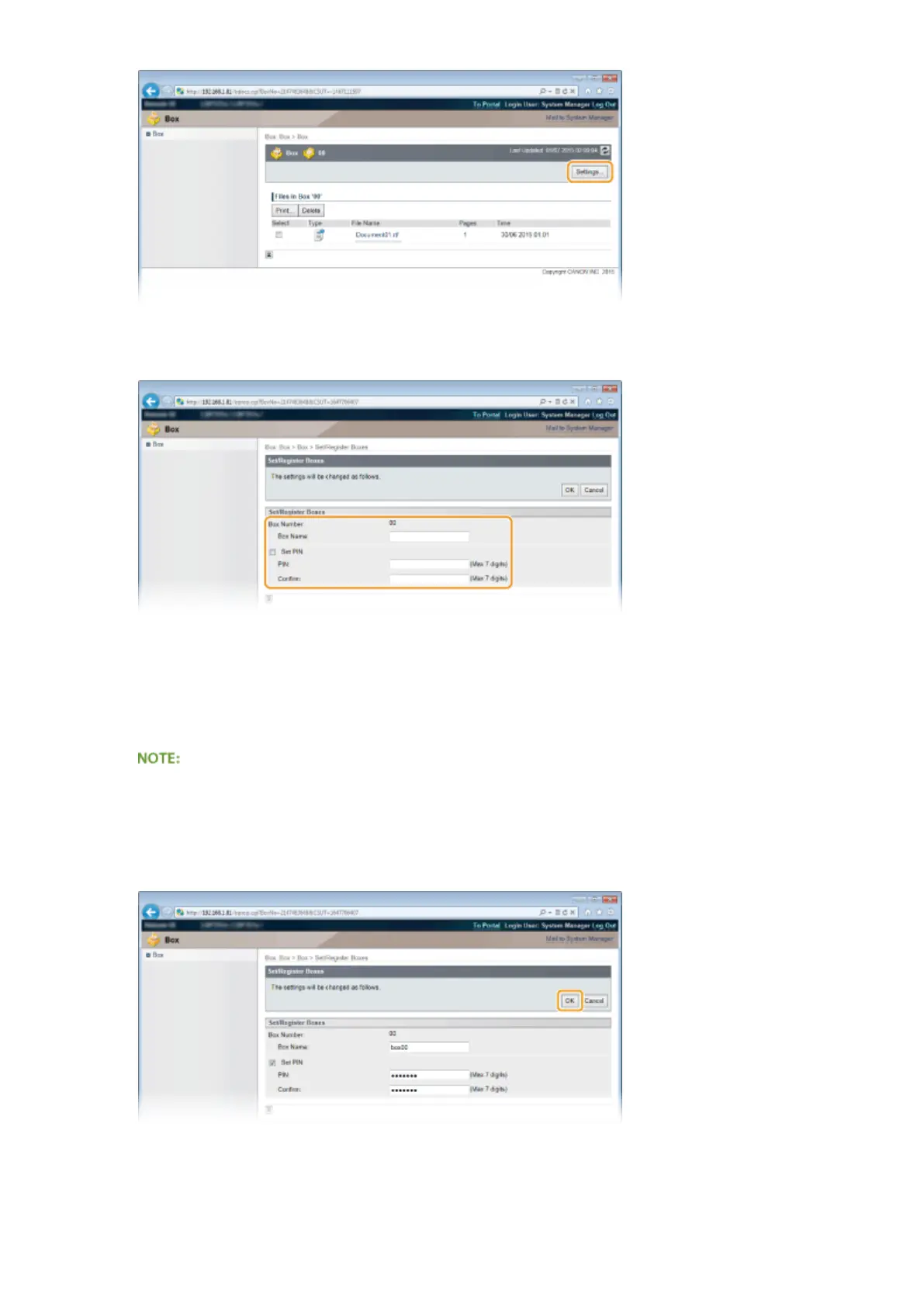 To set a PIN, select the [Set PIN] check box and enter a number of up to seven digits for the PIN in the [PIN]