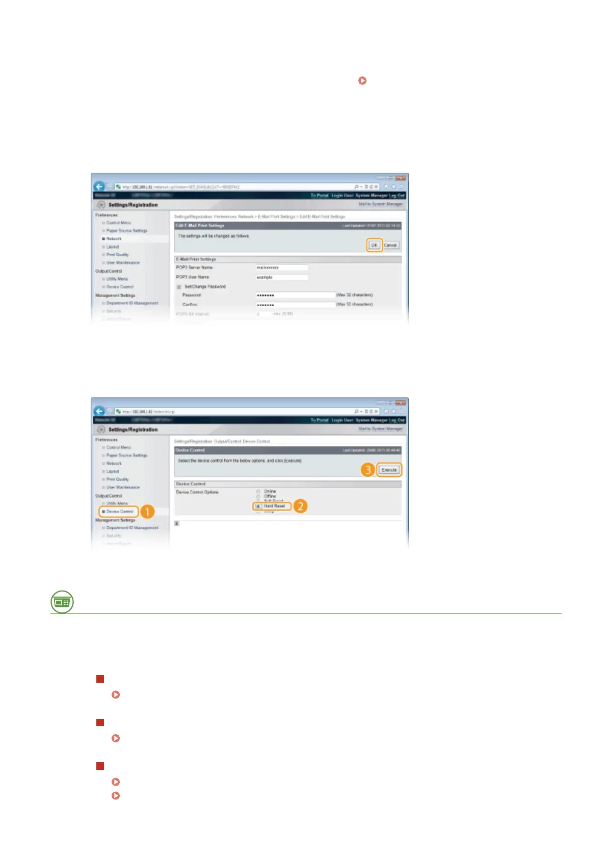 ● Click [Device Control], select [Hard Reset], and then click [Execute].