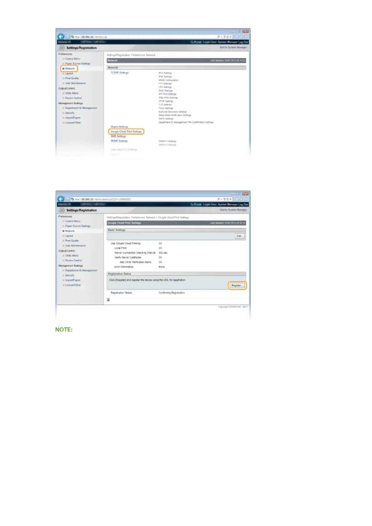 Click [Register] in [Registration Status].