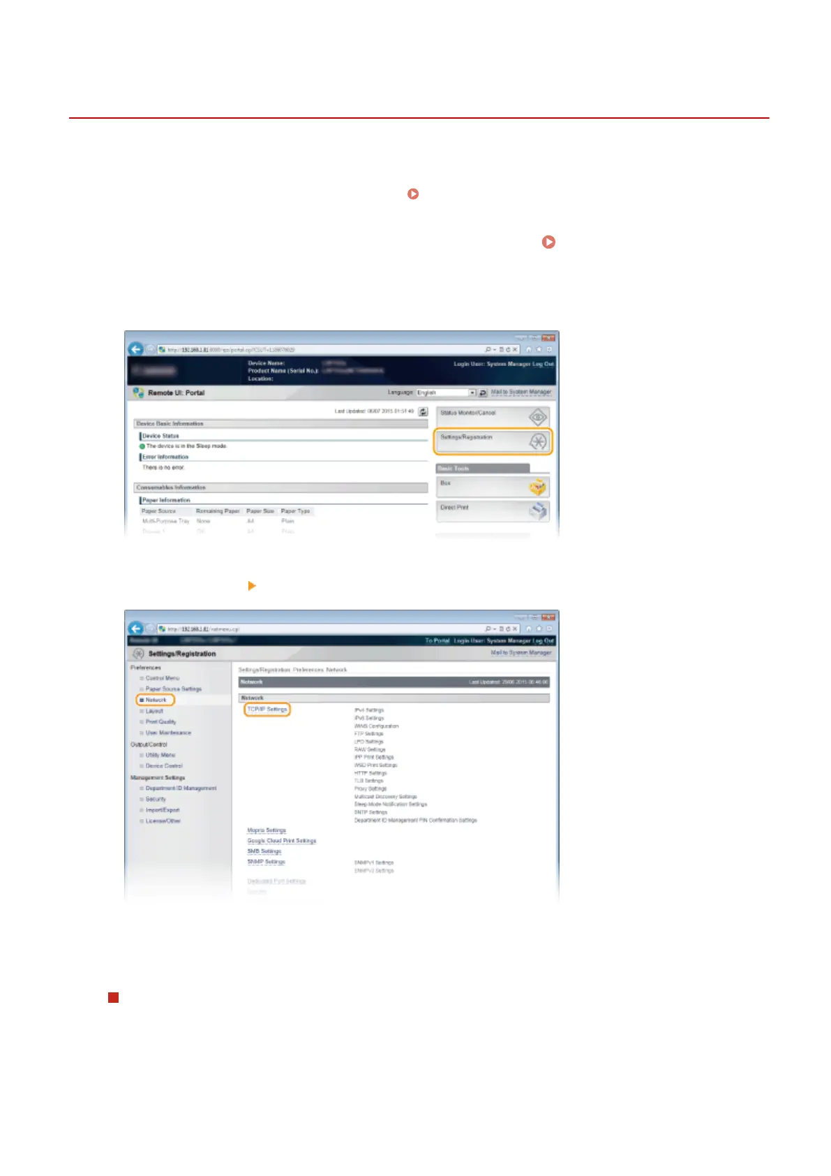 Click [Network] [TCP/IP Settings].
