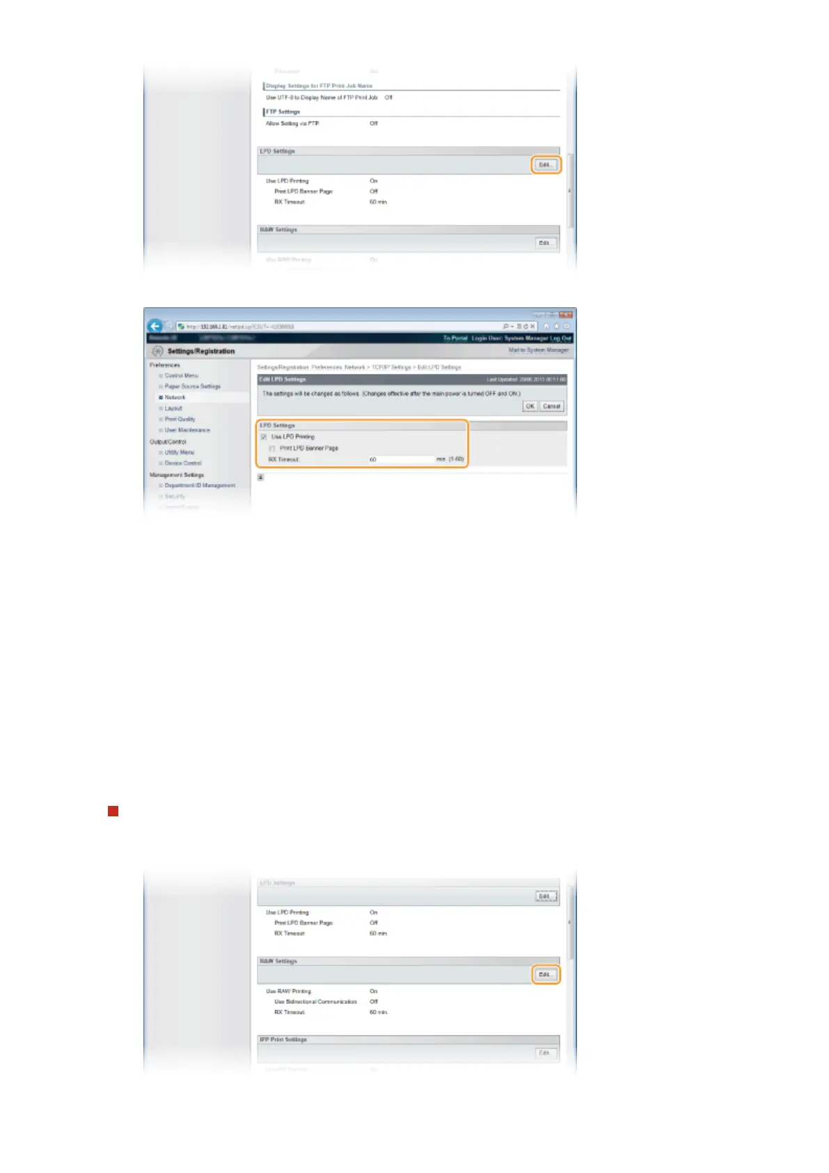 When using LPD for printing, select the check box. When not using, clear the check box.