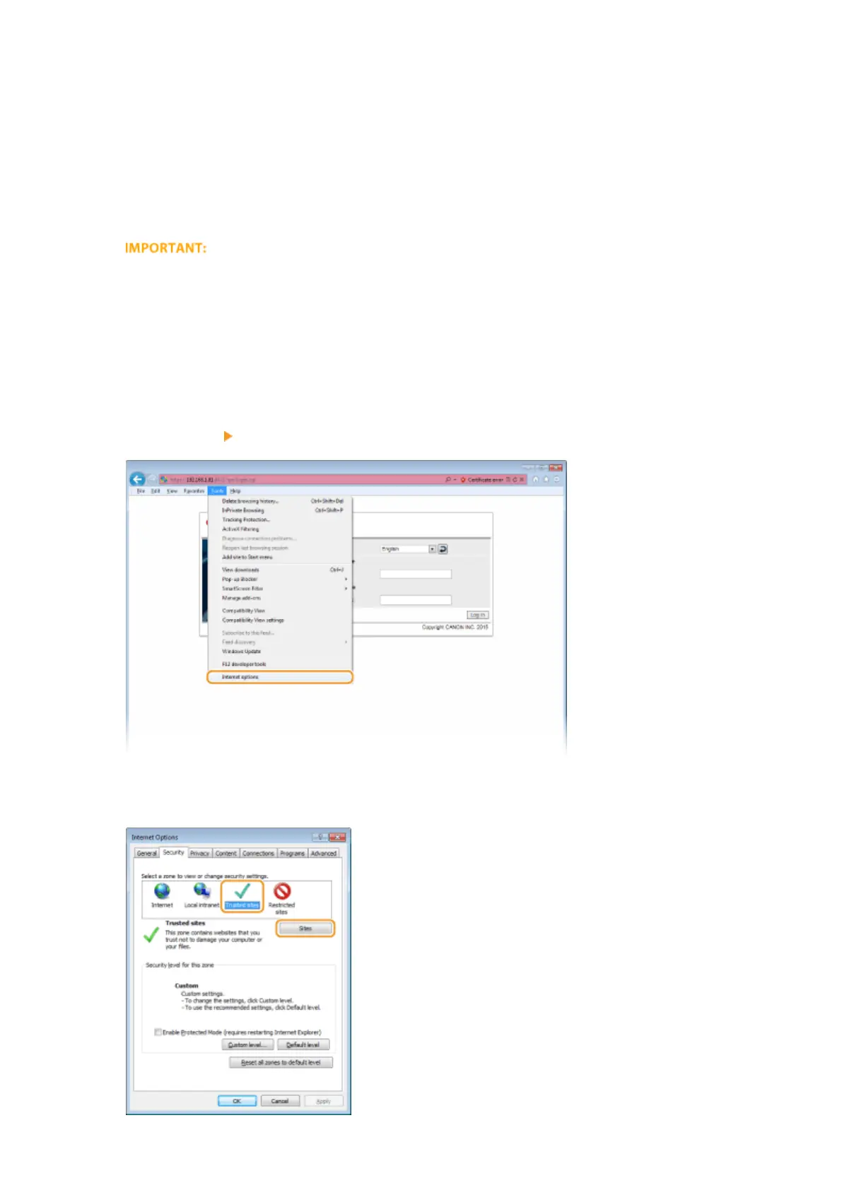 Select [Trusted Sites] in the [Security] tab, and click [Sites].