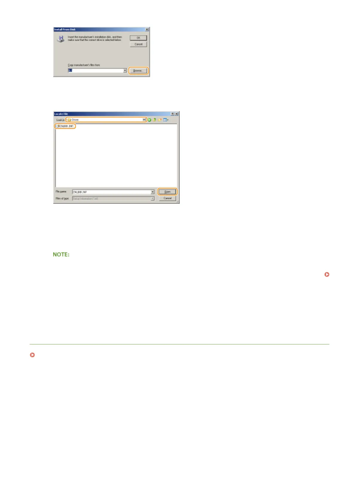 Specify the folder where the printer drivers are contained, select the INF le, and